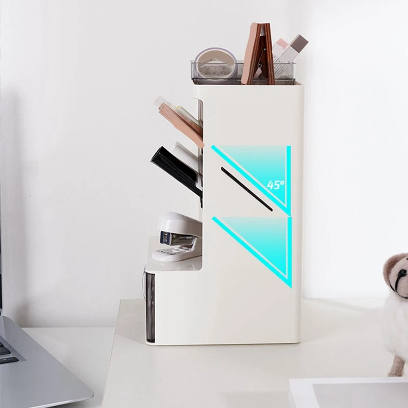 [Organizador de escritorio con portalápices de gran capacidad] Este portalápices para el aula con 6 compartimentos inclinados en un ángulo de 45 grados proporciona una mejor visibilidad de cada bolígrafo, lo que hace que sea rápido y sencillo elegir el correcto.El diseño inclinado optimiza el espacio del escritorio, asegurando que sus bolígrafos se guarden ordenadamente sin ocupar demasiado espacio con este dispensador de lápices para organizadores de aula y oficina para escritorio, ayuda a evitar el desorden del escritorio al mantener varios bolígrafos perfectamente separados y fácilmente accesibles.