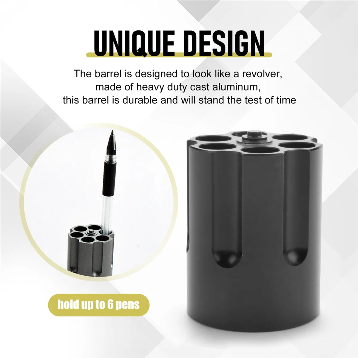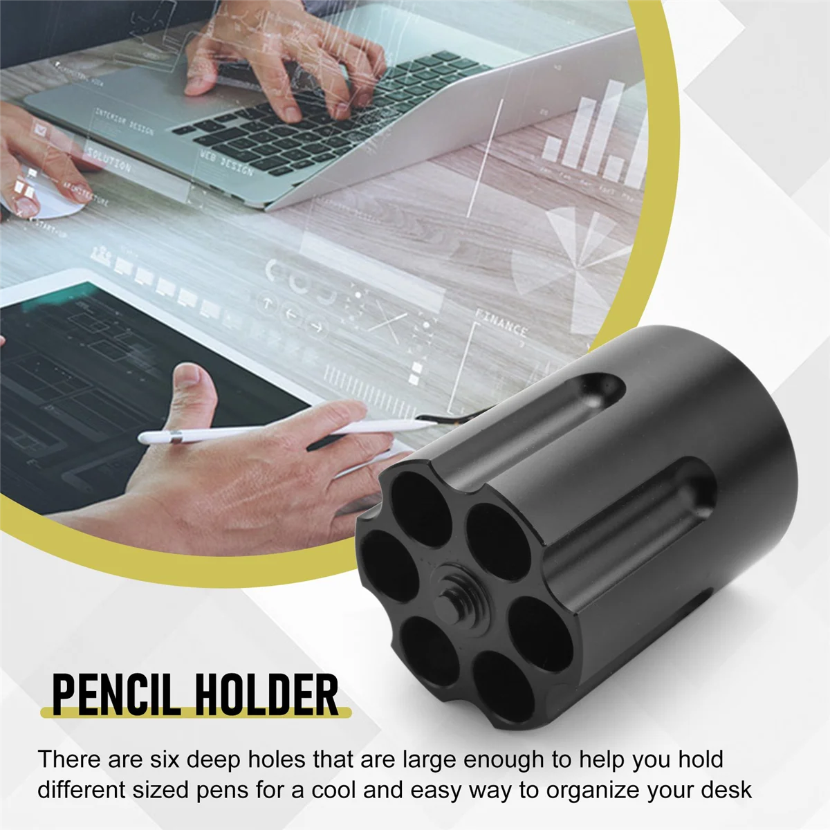 Comprar Portalápices para revólver con Diseño de cilindro de 6 ranuras, adorno creativo para oficina, resistente, antideslizante, aleación de aluminio