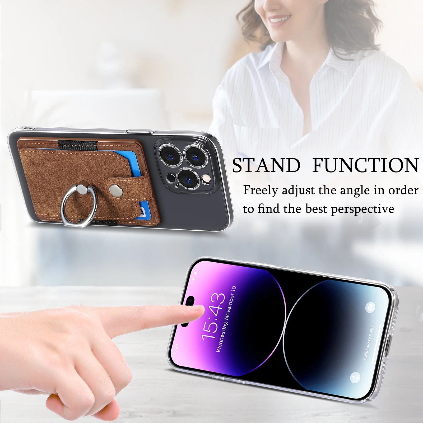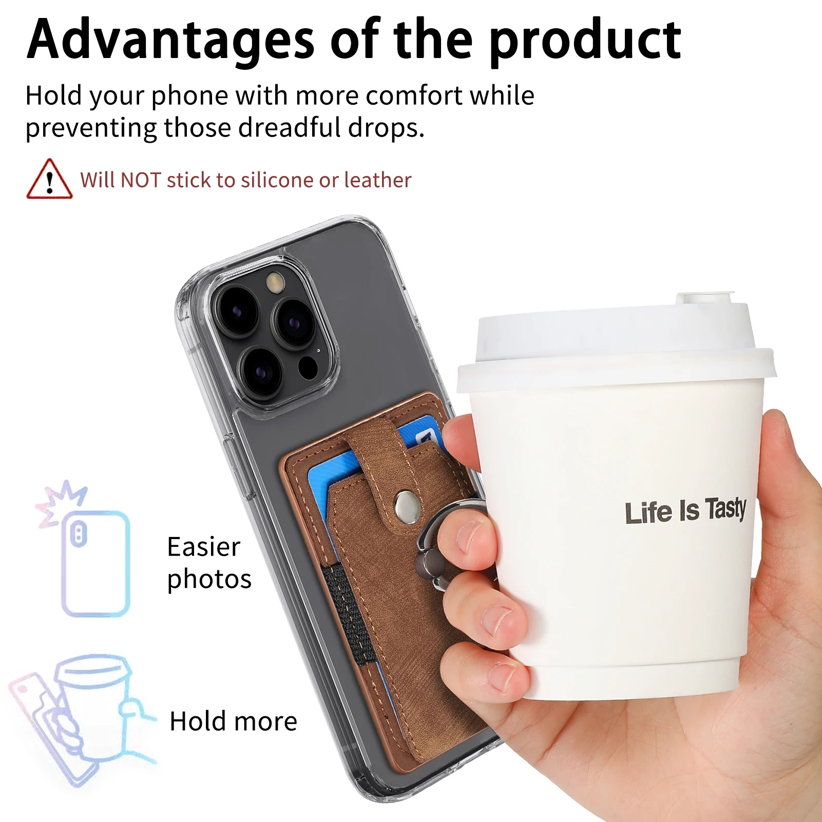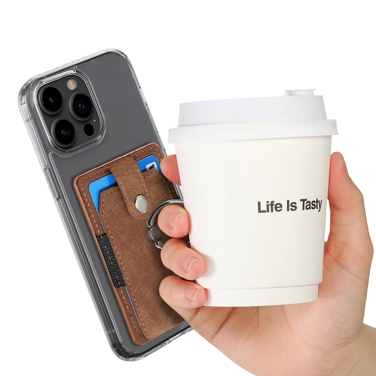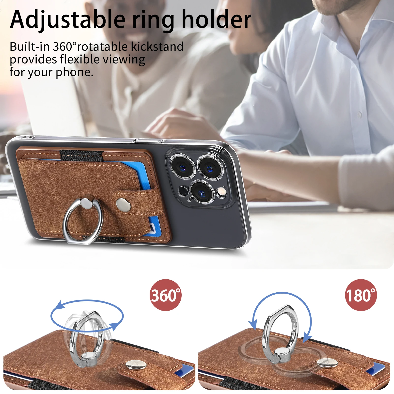 Tarjetero Magnético Vintage para Coche, Pegatina de Cuero, Adhesivos para Tarjetas de Crédito, Bolsa para Teléfono Móvil, Pegatinas Traseras para Anillo de Smartphone