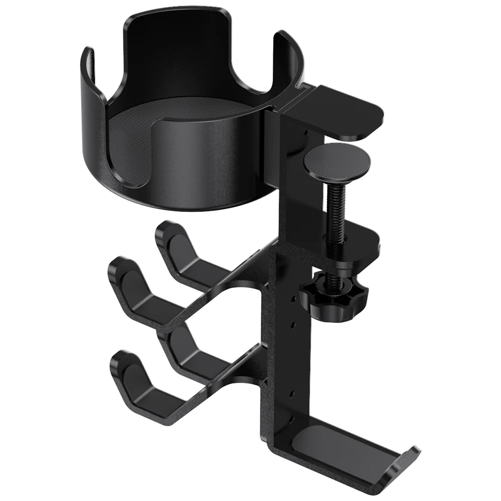 Soporte de controlador de abrazadera de escritorio giratorio 3 en 1 de 360 grados, portavasos reemplazable, portavasos antiderrames con soporte para auriculares, Compatible con taza de controlador de auriculares