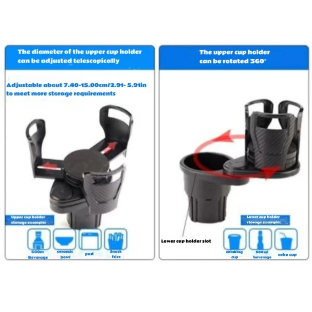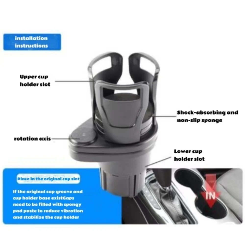 Portavasos multifunción para coche 2 en 1 Adaptador ajustable del expansor del sostenedor de taza del coche 360 grados que giran la taza del coche