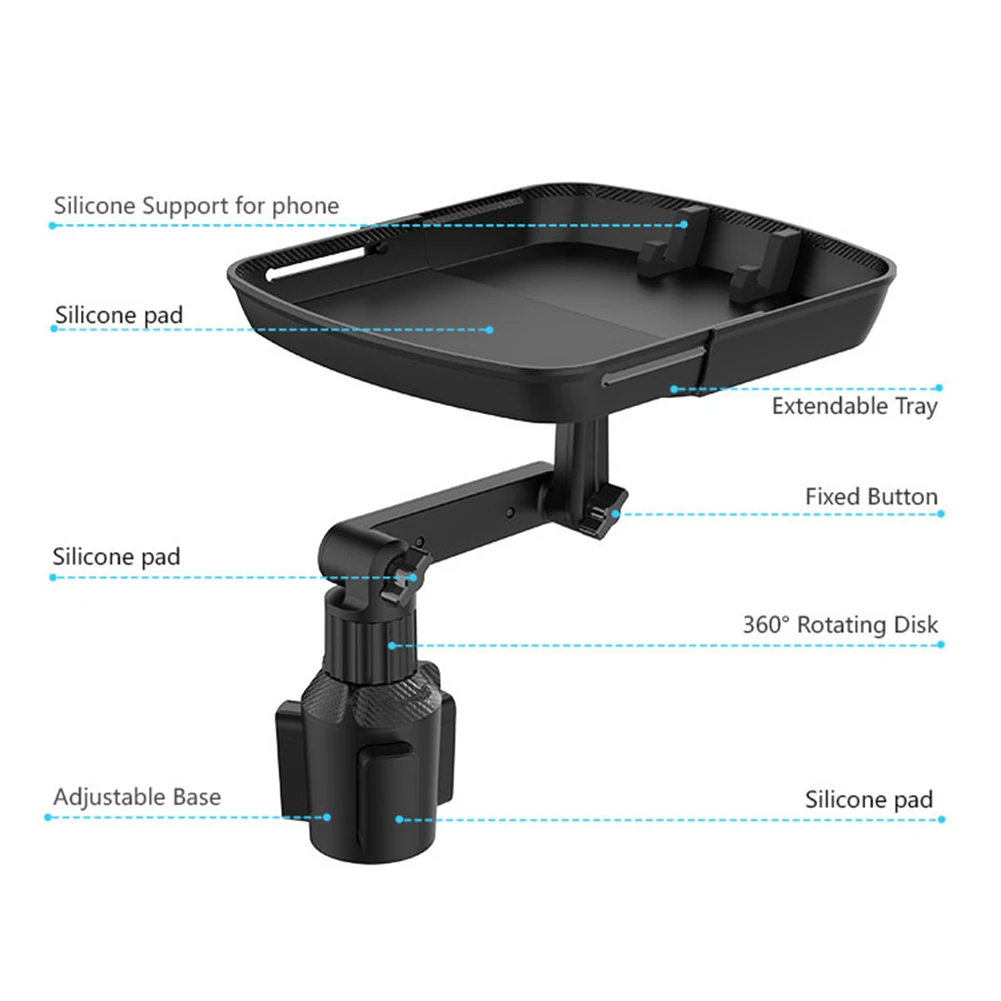 Bandeja universal para portavasos de coche, soporte ajustable para teléfono móvil de coche, mesa giratoria de 360 ° para comida, expansor de portavasos