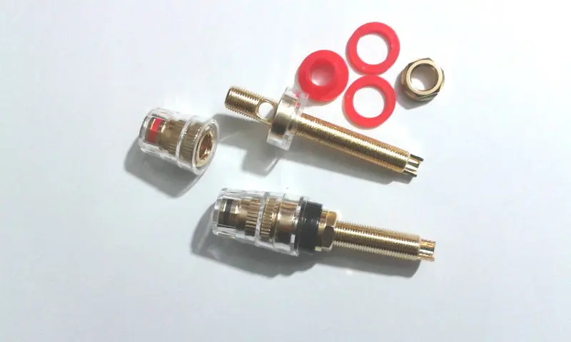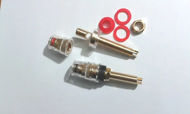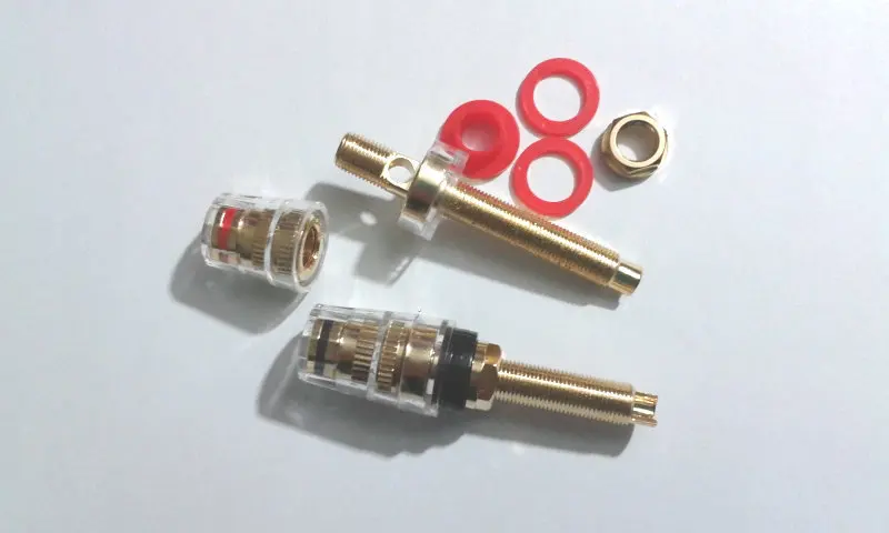 Comprar Poste de encuadernación de cristal de cobre para amplificador de altavoz, Conector de enchufe Banana de 4mm, 2 uds., nuevo