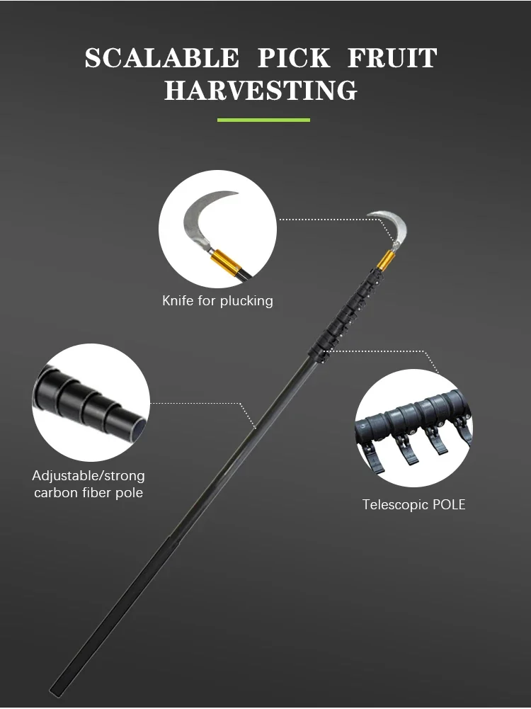 Comprar Poste de fibra de carbono de gran altura para desplumador de frutas, herramientas de Agricultura para cosechar conos de pino de arecanut de coco y nuez de betel