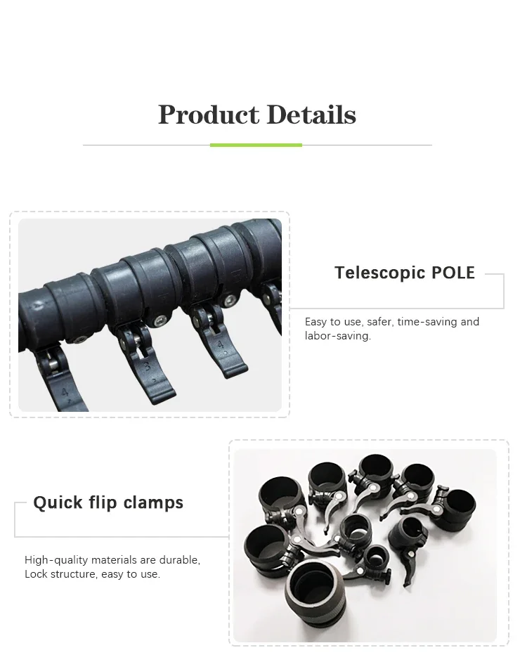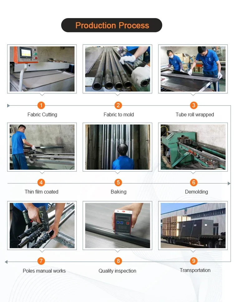 Poste telescópico de fibra de carbono Los productos de fibra de carbono producidos por Chenyi utilizan materias primas de fibra de carbono importadas de alta calidad. Chenyi posee la línea de producción completa desde el filamento de fibra de carbono hasta el producto final. La fibra de carbono que aplicamos se teje en la misma fábrica con el filamento de alta calidad importado de Japón Toray.