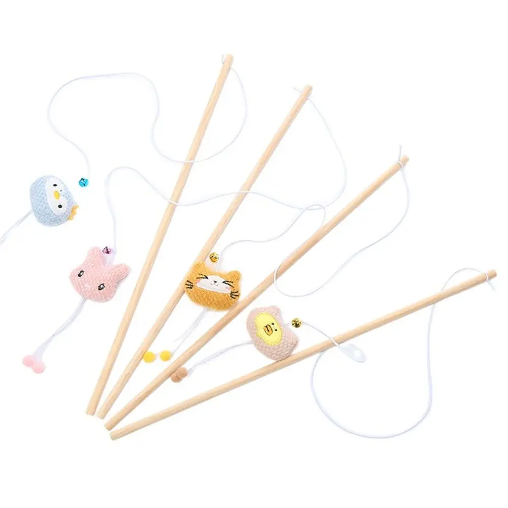Comprar Poste de madera con forma de Animal para gato, palo de peluche divertido con campana, palo interactivo creativo, suministros para mascotas, nuevo, 1 unidad