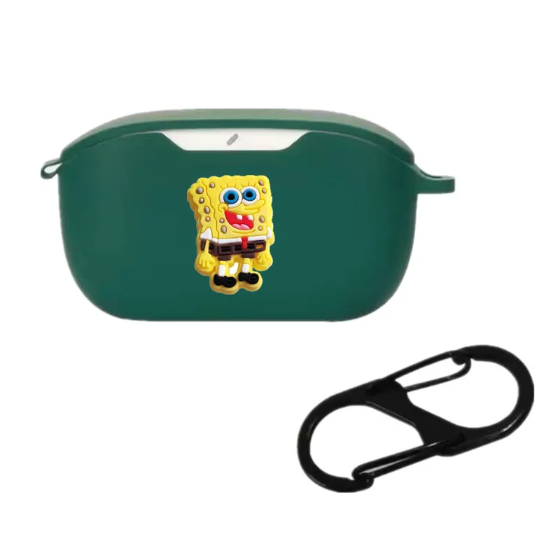 Funda para auriculares Bob Esponja para JBL Wave Buds/Buds2/100, carcasa protectora de silicona para auriculares inalámbricos con gancho