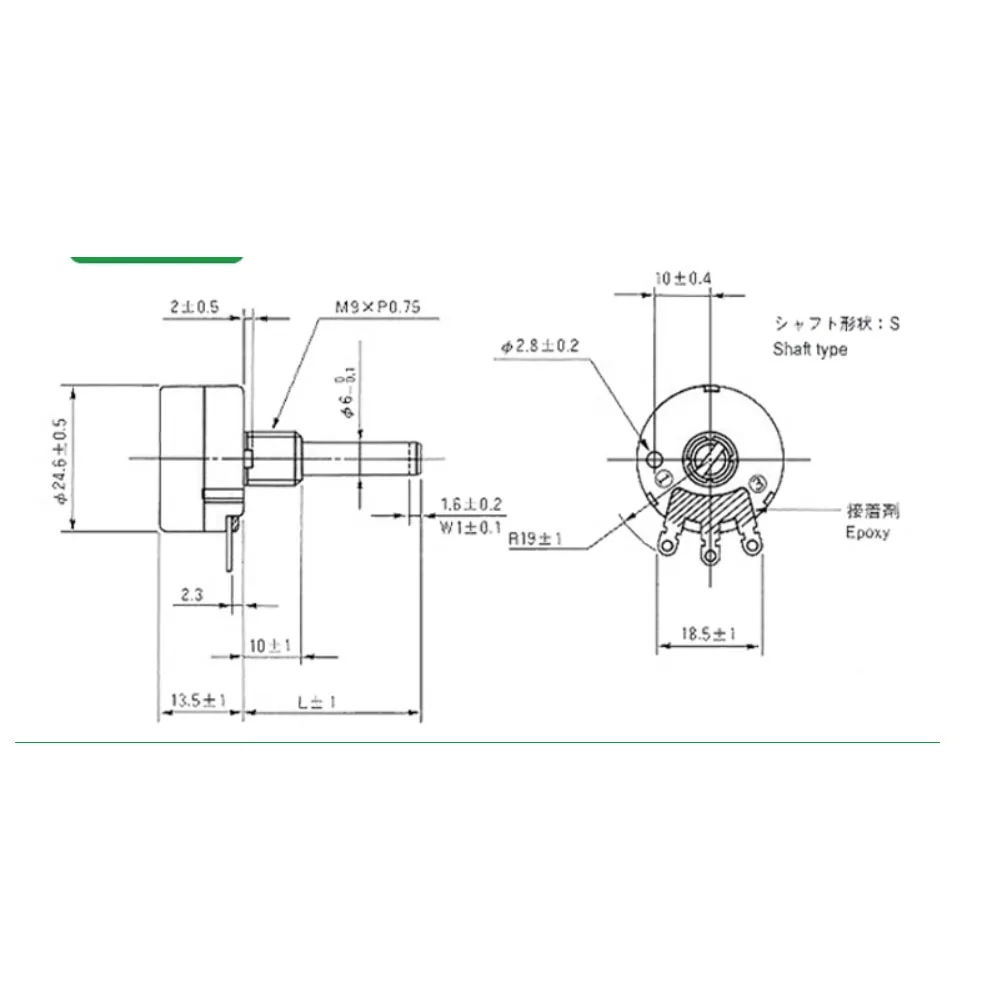 Potenciómetro de película de carbono de bobina única RV24YN20S