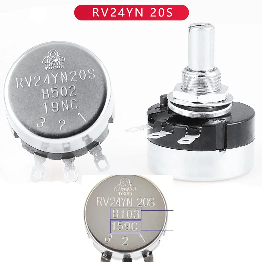 Comprar Potenciómetro Arcade de película de carbono de un solo giro, resistencia ajustable, RV24YN20S, B103, 502, 1K, 2K, 10K, 5K, 1M, perilla
