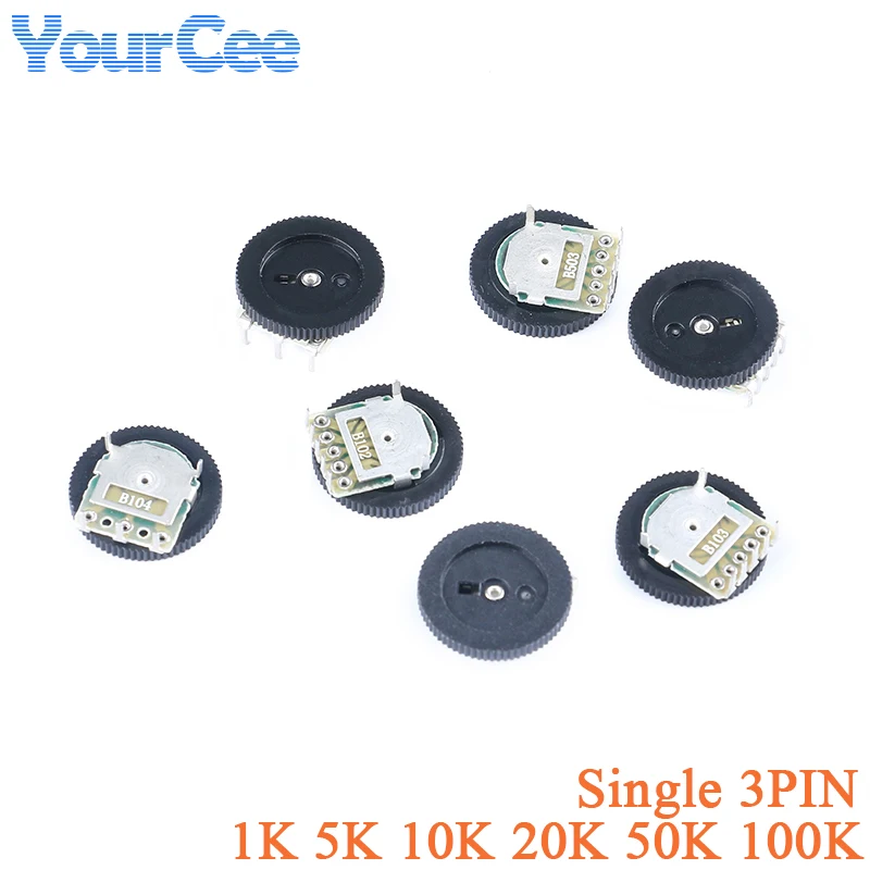 Comprar Potenciómetro de Dial único, disco de interruptor de volumen, 1K, 5K, 10K, 20K, 50K, 100K Ohm, B102, B502, B103, B203, B503, B104, 20 unidades por lote