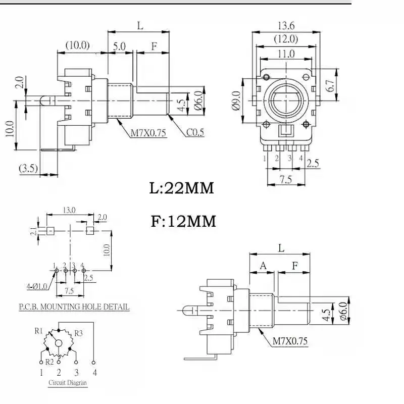 Potenciómetro Digital de dispositivo de efecto de consola mezcladora, 1 unidad, para Midas PRO6 0B10K, 360 grados, 4 pines, Alpha RV112FF-40B3N, medio eje de 22mm