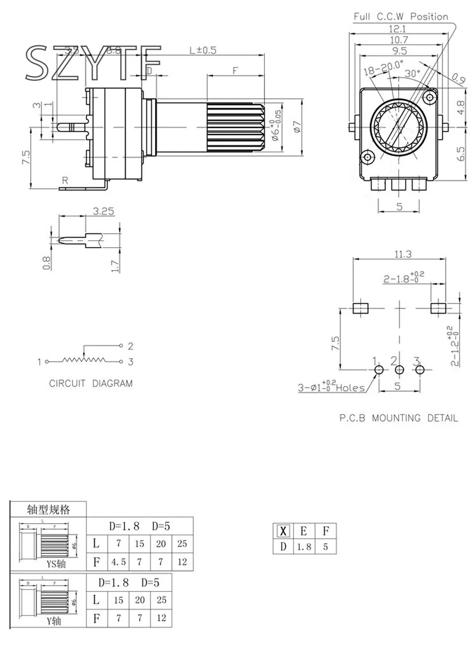 Bing Chang: 12-13MM (altura total del potenciómetro 20MM)