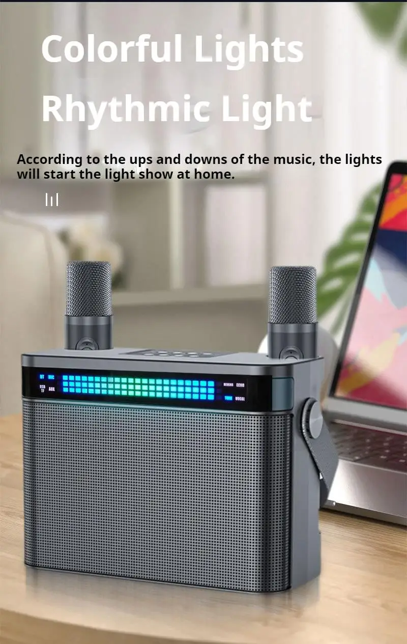 30W 360° Sonido envolvente, luz colorida, máquina portátil de Karaoke familiar, subwoofer, altavoz Bluetooth con doble micrófono, equipo de canto