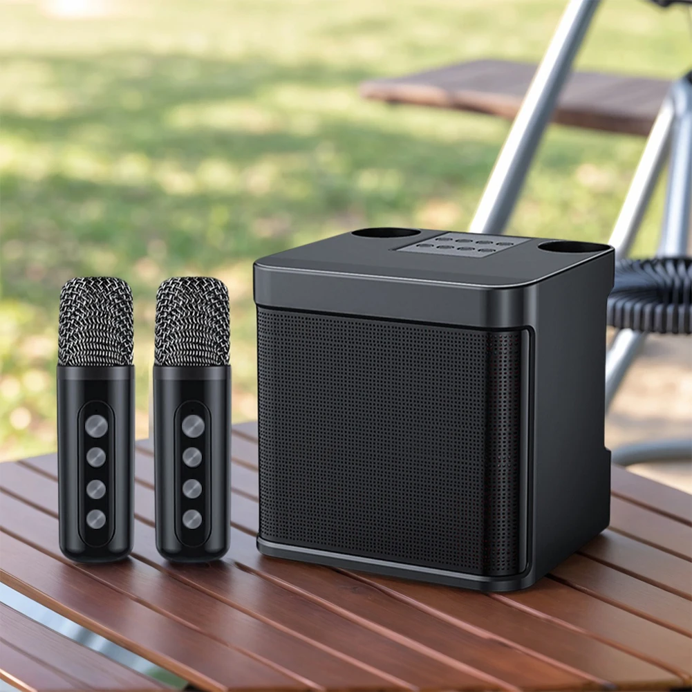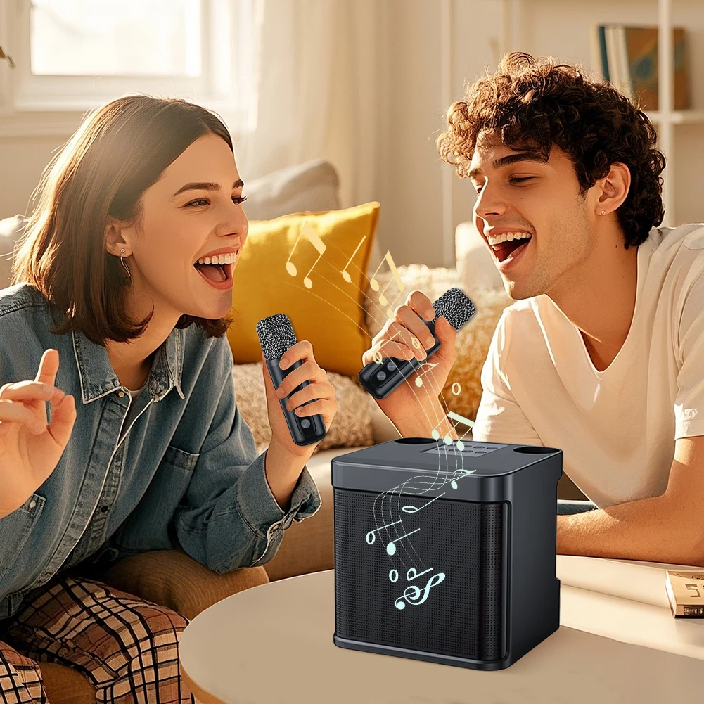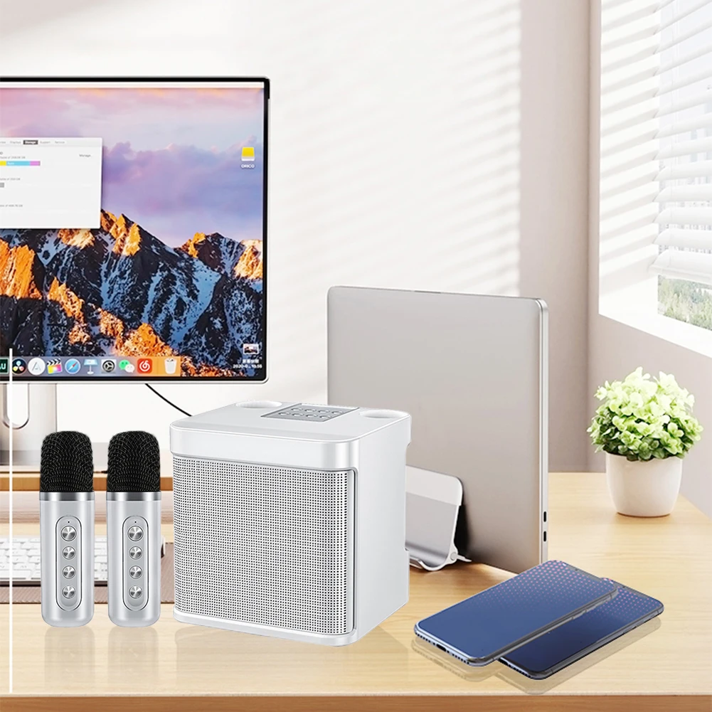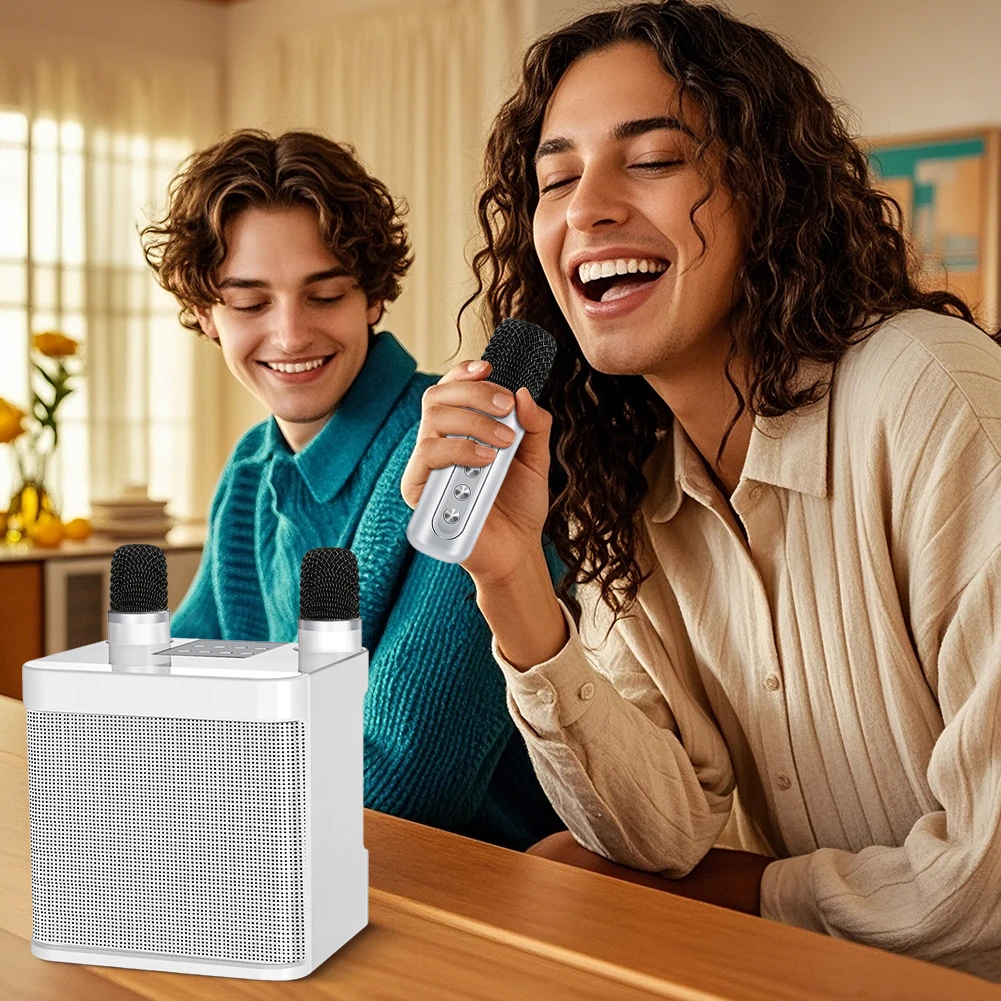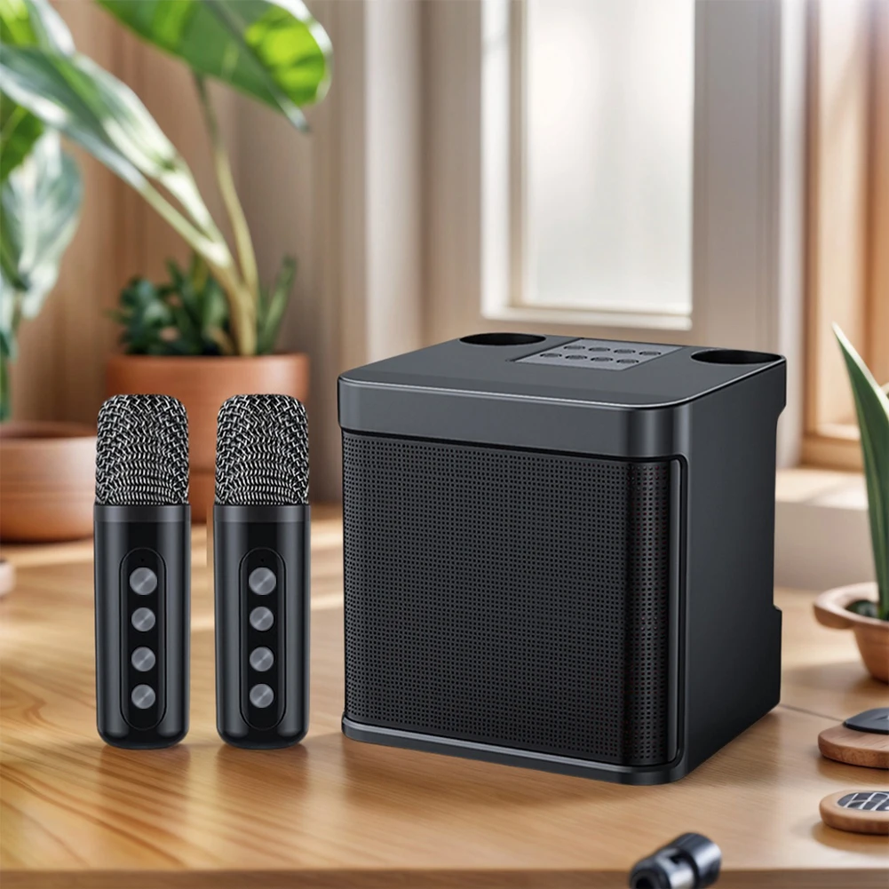 Comprar Potente Altavoz Bluetooth portátil inalámbrico de 10W con micrófono Dual, máquina de Karaoke para fiesta familiar al aire libre, Subwoofer Boom Box