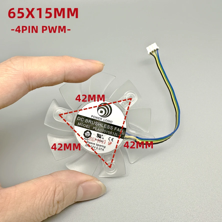 Comprar POWER LOGIC 7015-ventilador para tarjeta gráfica, 65m, 67MM de diámetro, 42mm, agujero de paso, VGA, PLA07015S12L-1, cc 12V, 0.07A, 3 pines