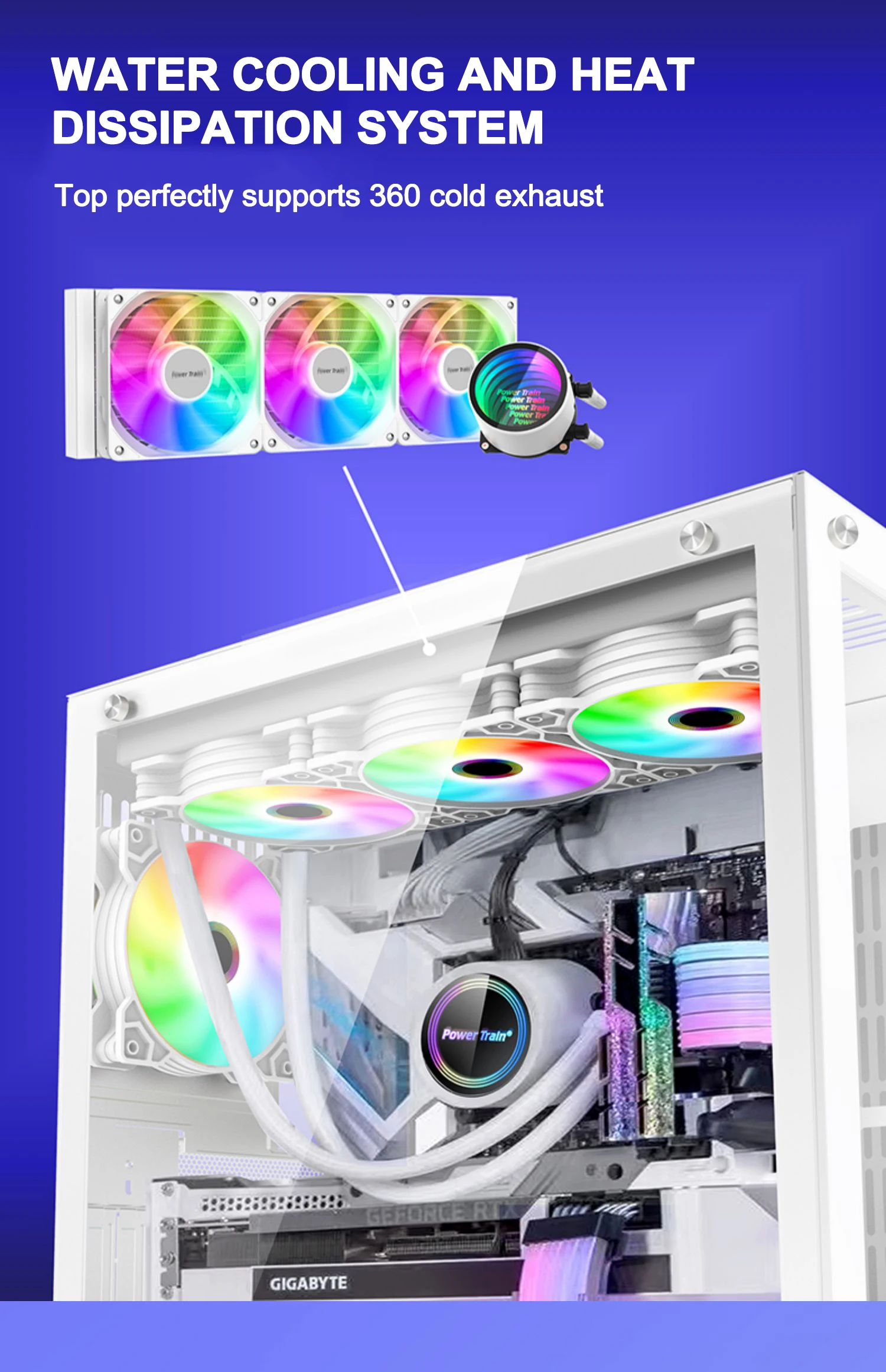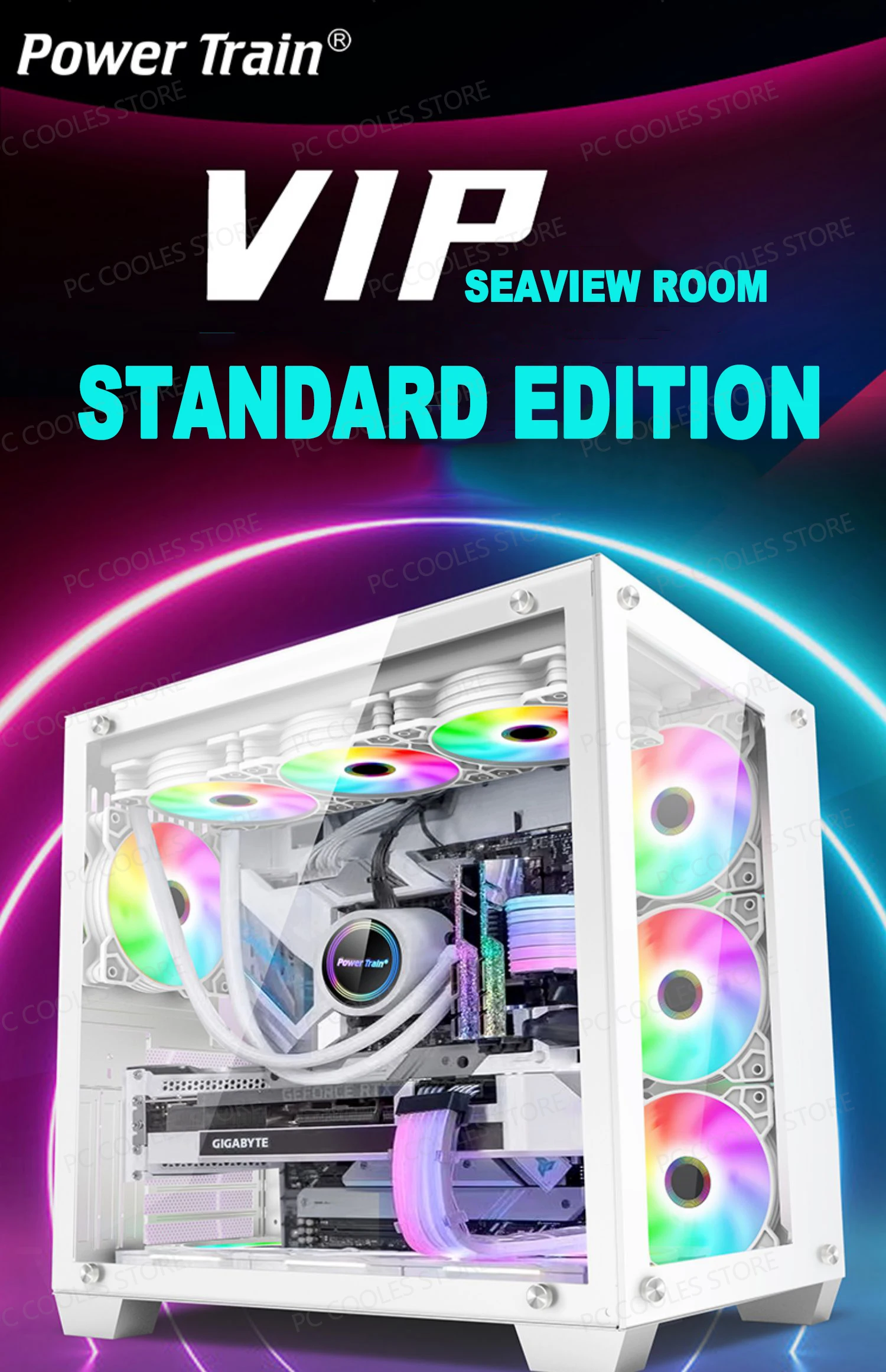 Comprar Power Train-carcasa de ordenador de escritorio para sala de estar, carcasa de escritorio de edición estándar, chasis transparente lateral, soporte EATX ATX ITX 360, enfriador de agua