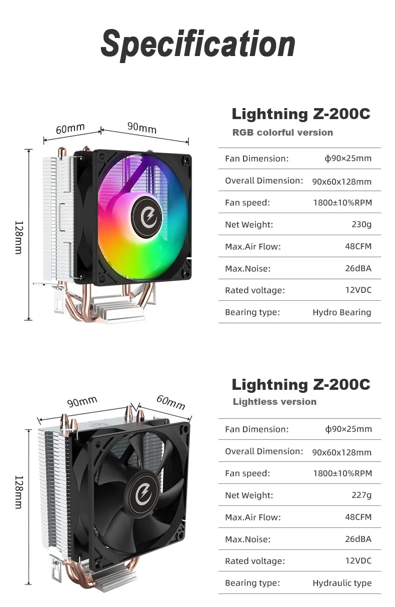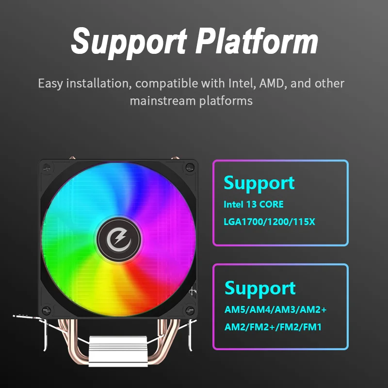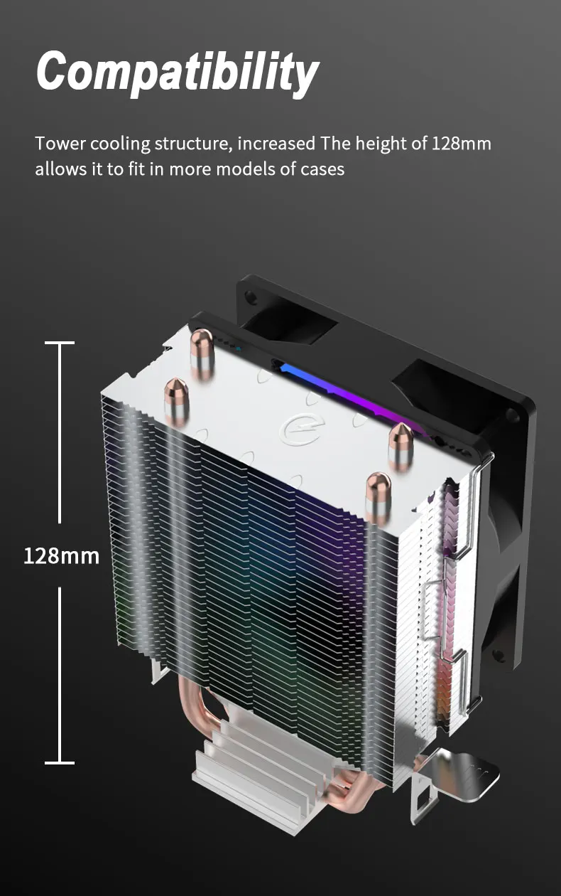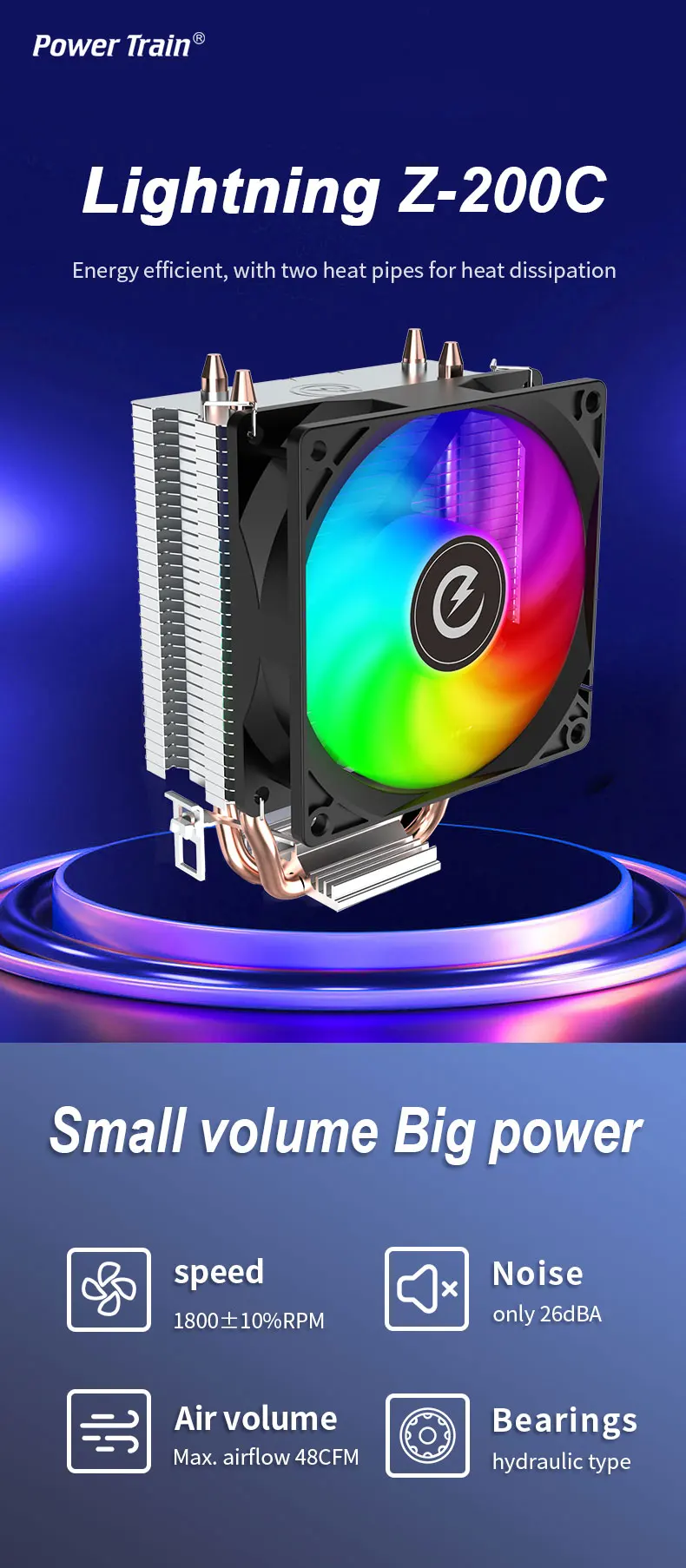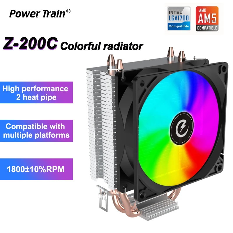 Comprar Power Train-enfriador de 2 tubos de calor para CPU, torre de carcasa de ordenador, radiador refrigerado por aire a presión para 1700 115X 1200 AM4 AM5