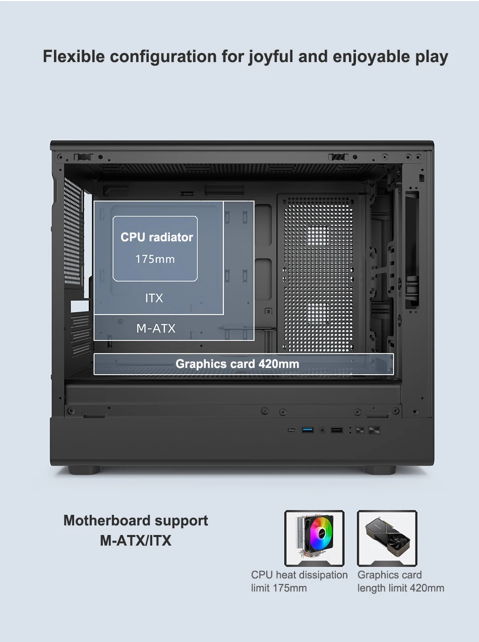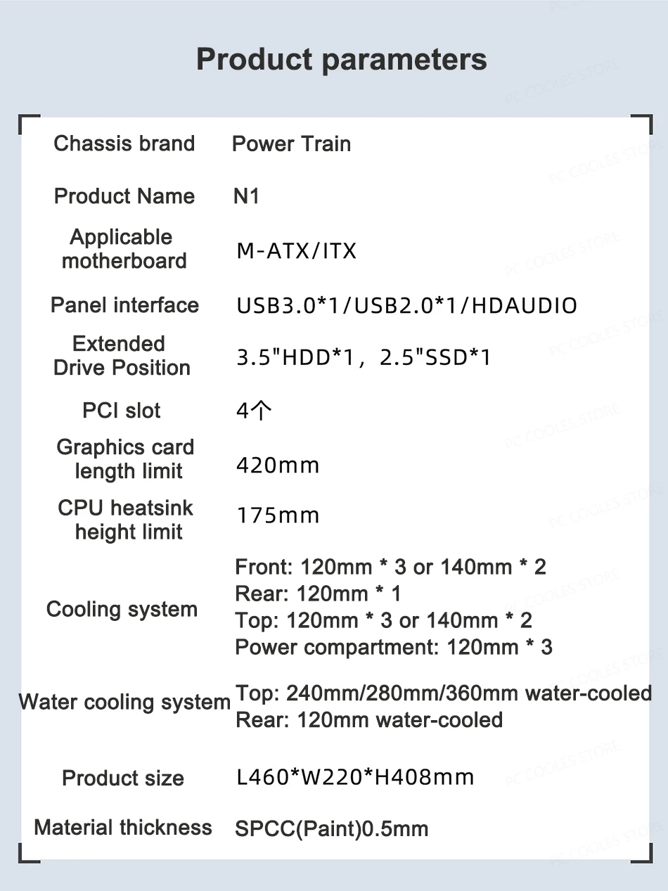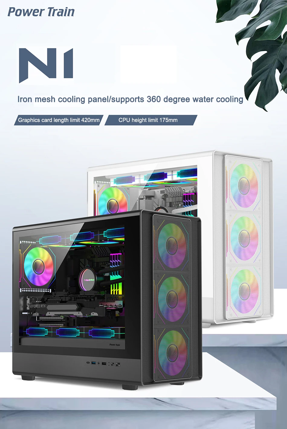 Power Train-funda de escritorio N1 MATX, carcasa de Host transparente lateral de vidrio Vertical, compatible con tarjeta gráfica de 420MM refrigerada por agua 360