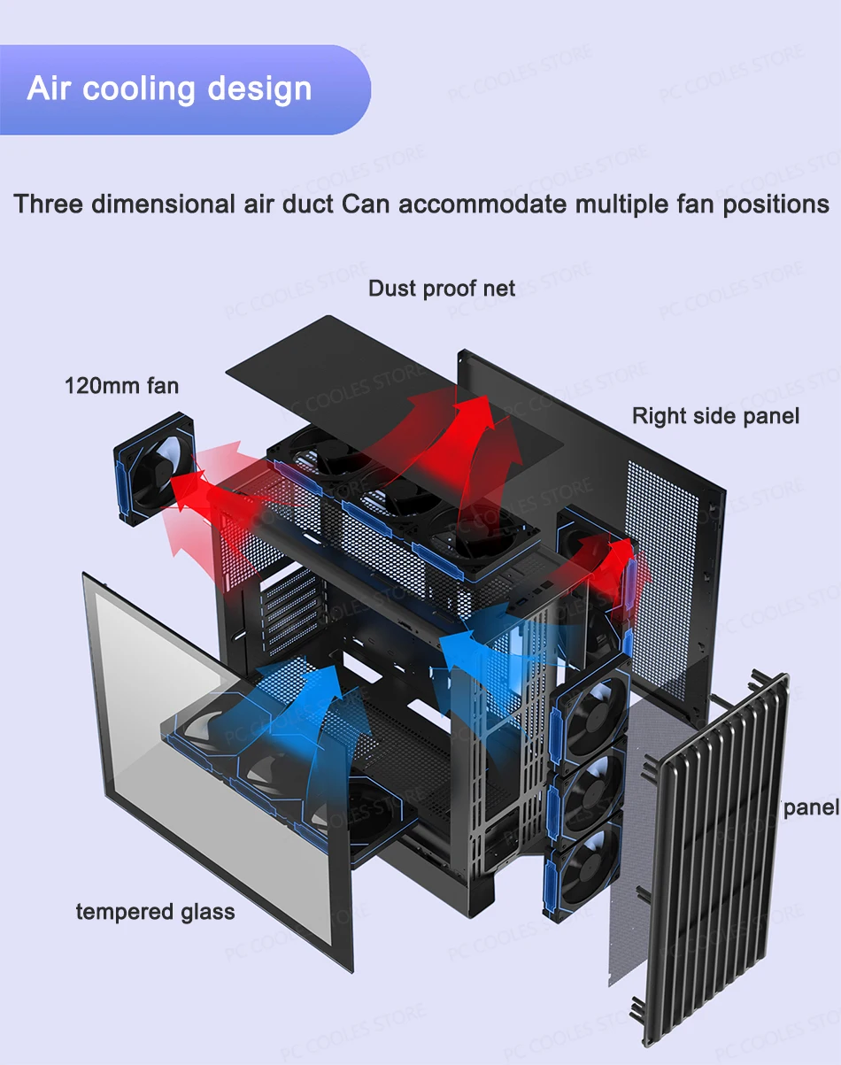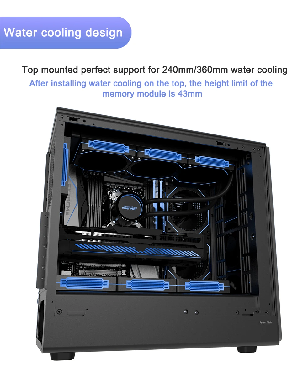 Parte superior: 240 mm/360 mm refrigerado por agua (después de instalarlo refrigerado por agua en la parte superior, el límite de altura del módulo de memoria es 43 mm)