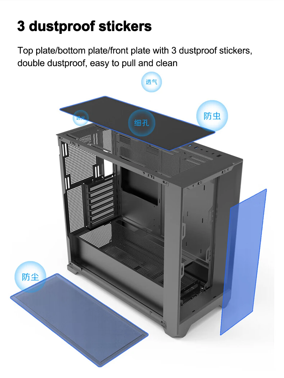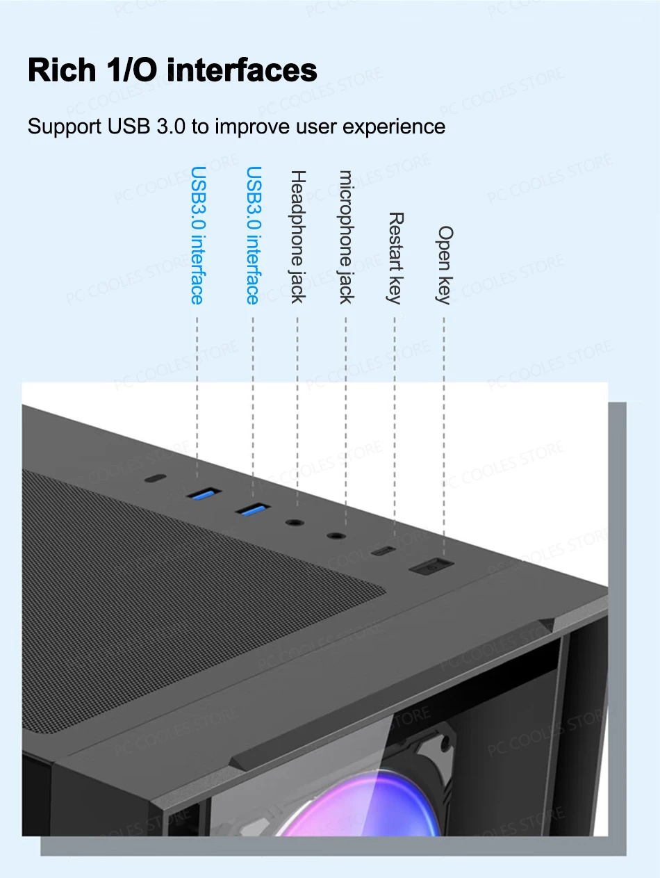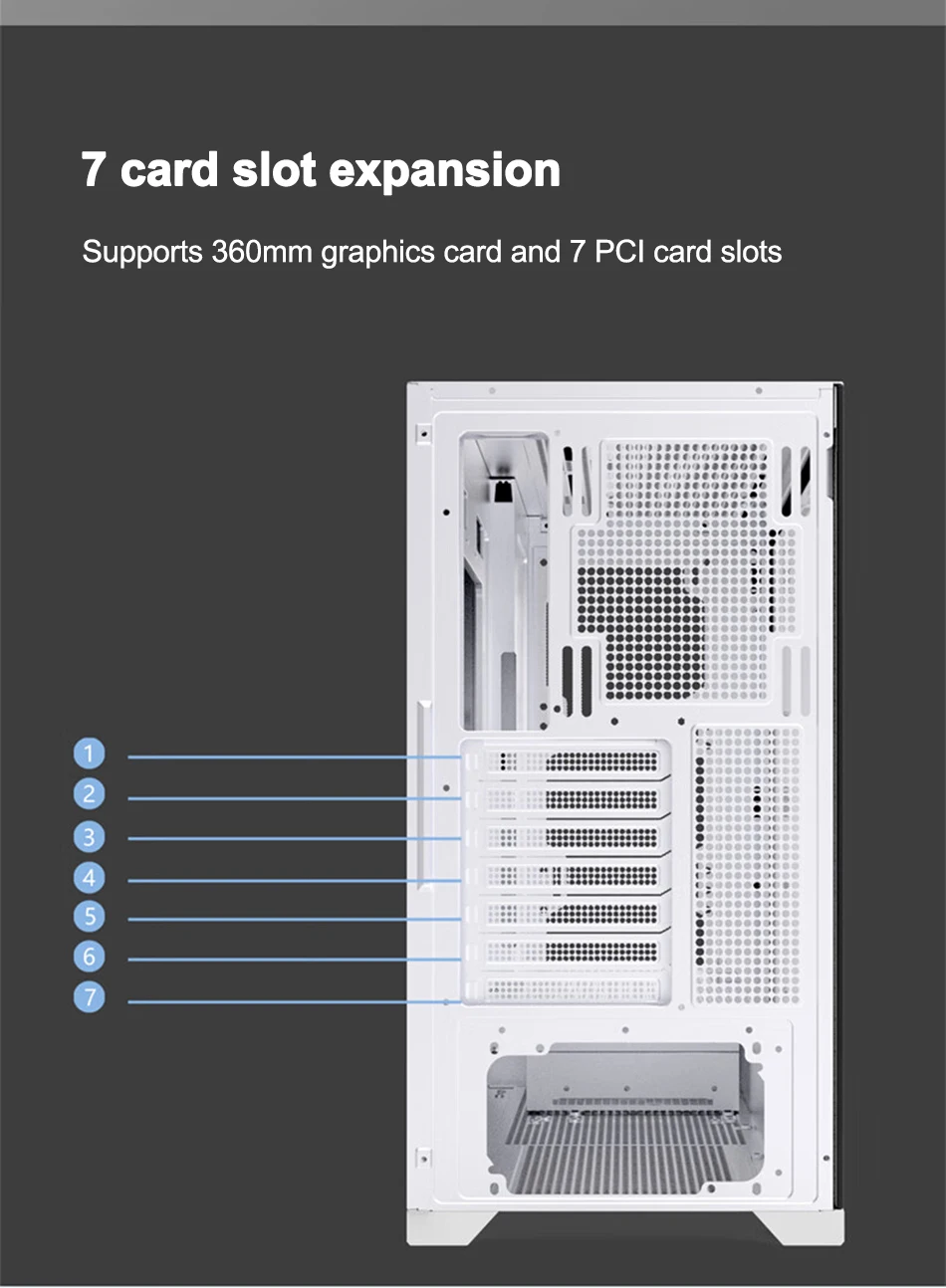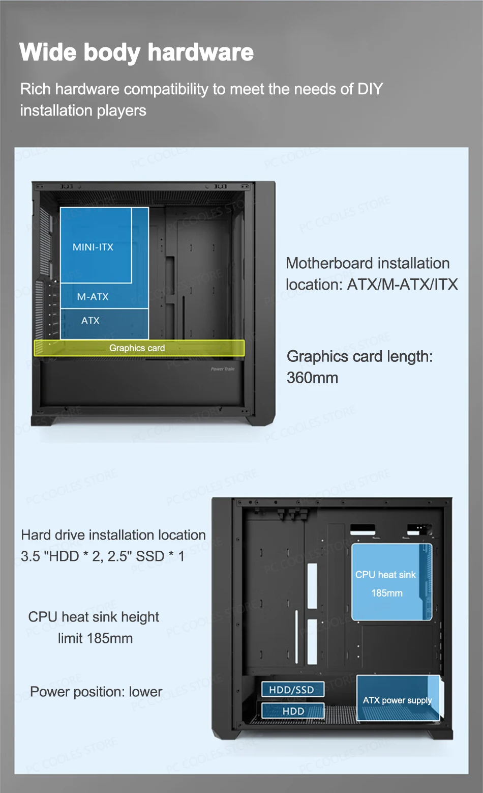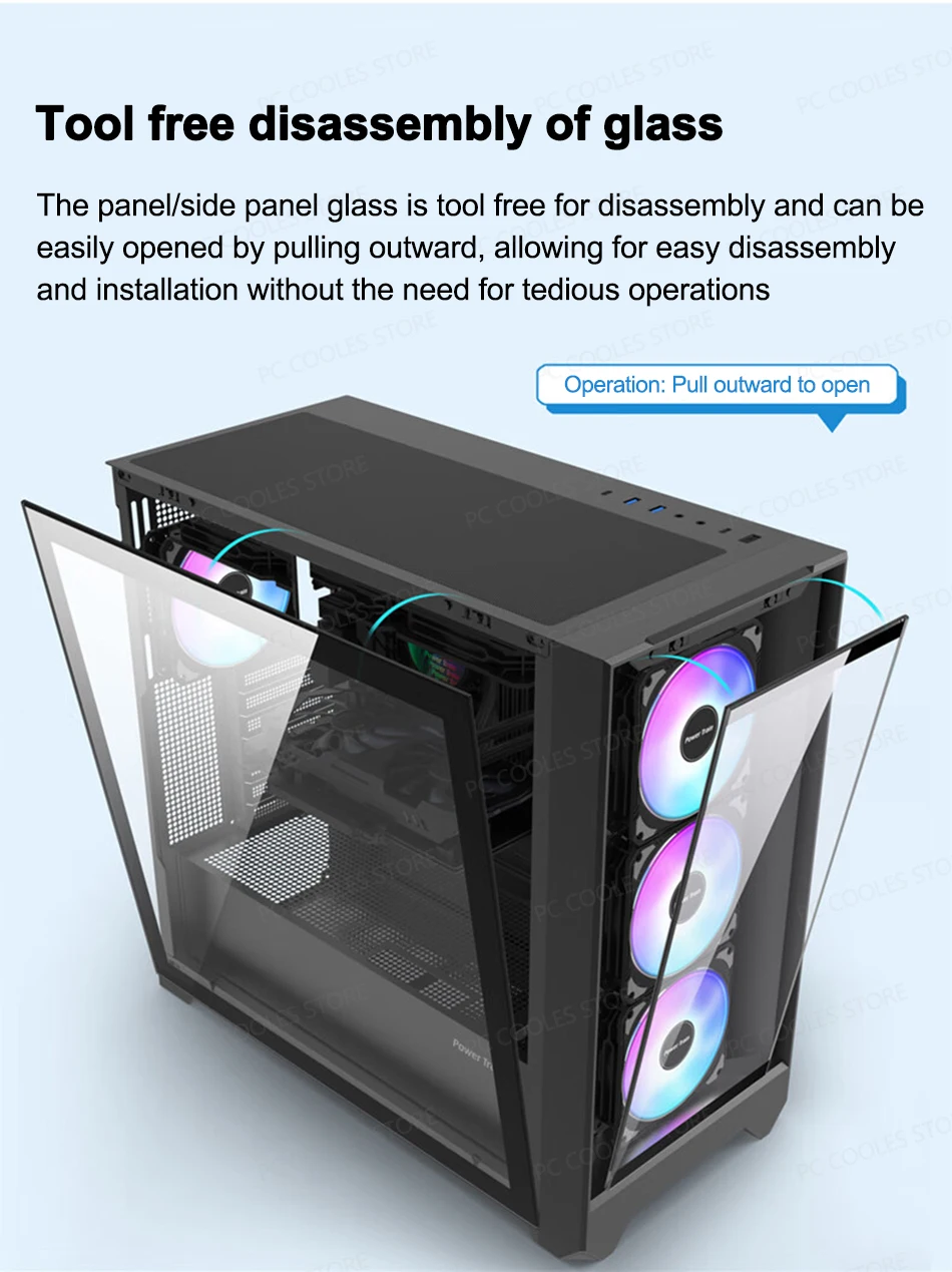 Comprar Power Train W10 ATX carcasa de vidrio templado transparente lateral, 7 ventiladores para enfriador de agua 360, 260mm, chasis de escritorio para tarjeta gráfica