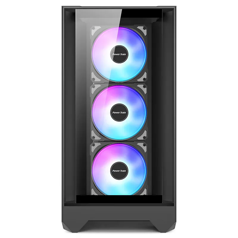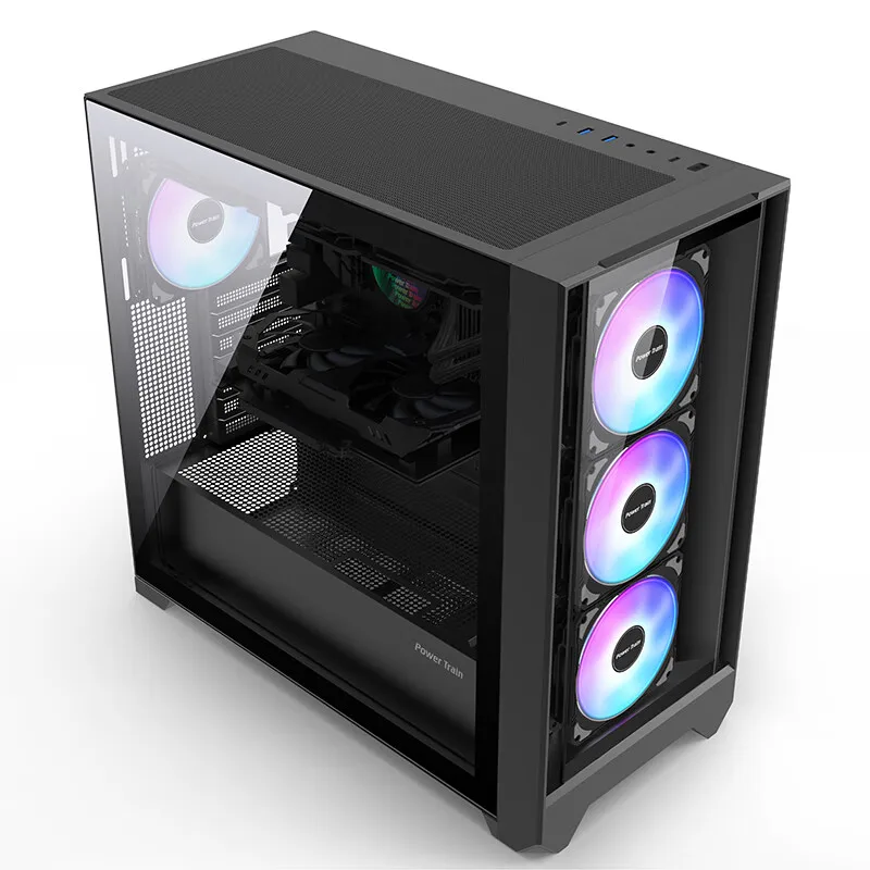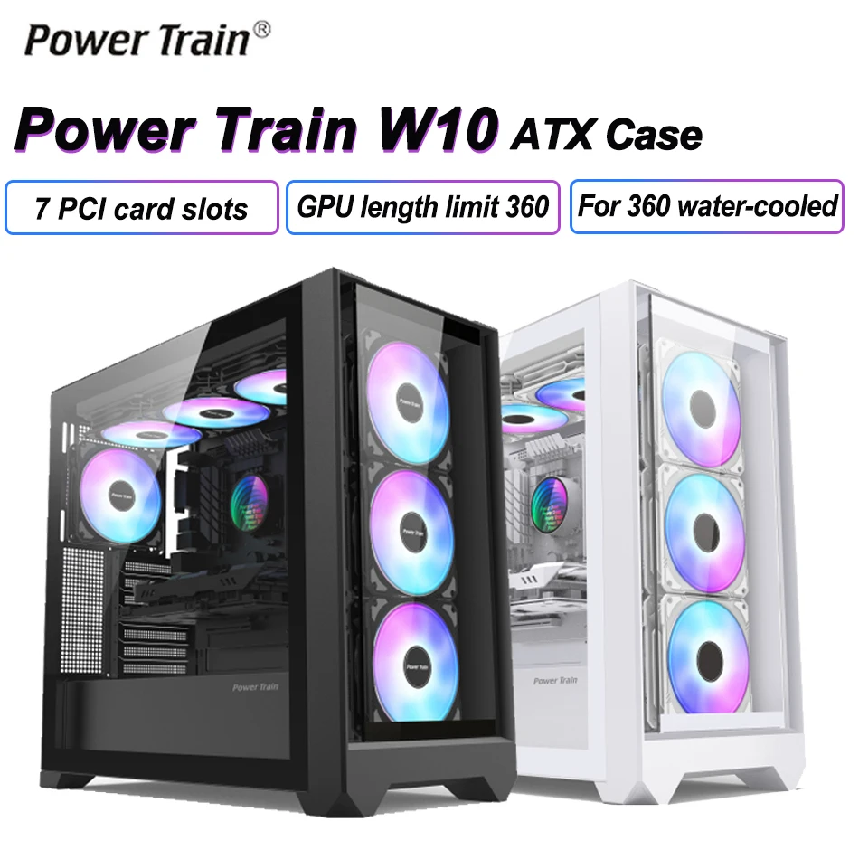 Comprar Power Train W10 ATX carcasa de vidrio templado transparente lateral, 7 ventiladores para enfriador de agua 360, 260mm, chasis de escritorio para tarjeta gráfica