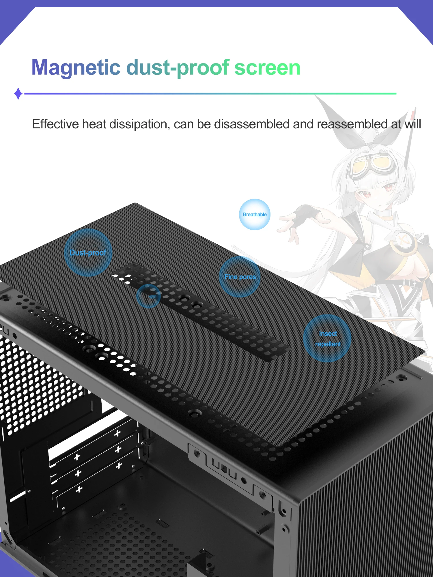 Sistema de refrigeración: Delantero: ventilador de 120 mm * 2 (15 mm de espesor) Parte superior: ventilador de 120 mm * 2 Parte trasera: ventilador de 120 mm * 1 Parte inferior: ventilador de 120 mm * 2