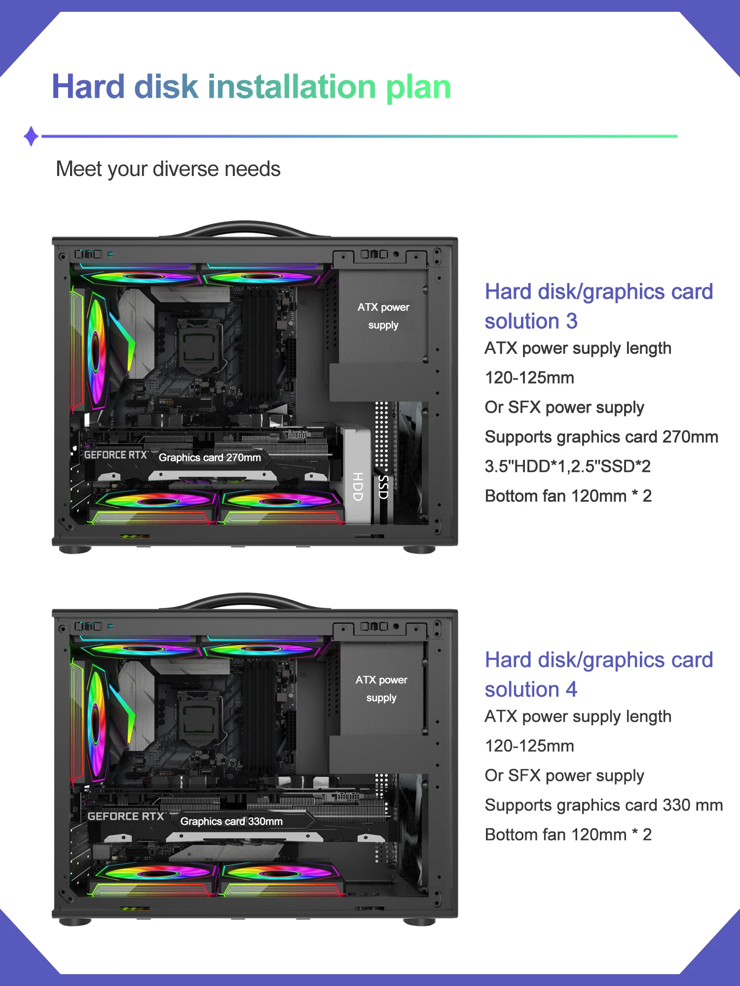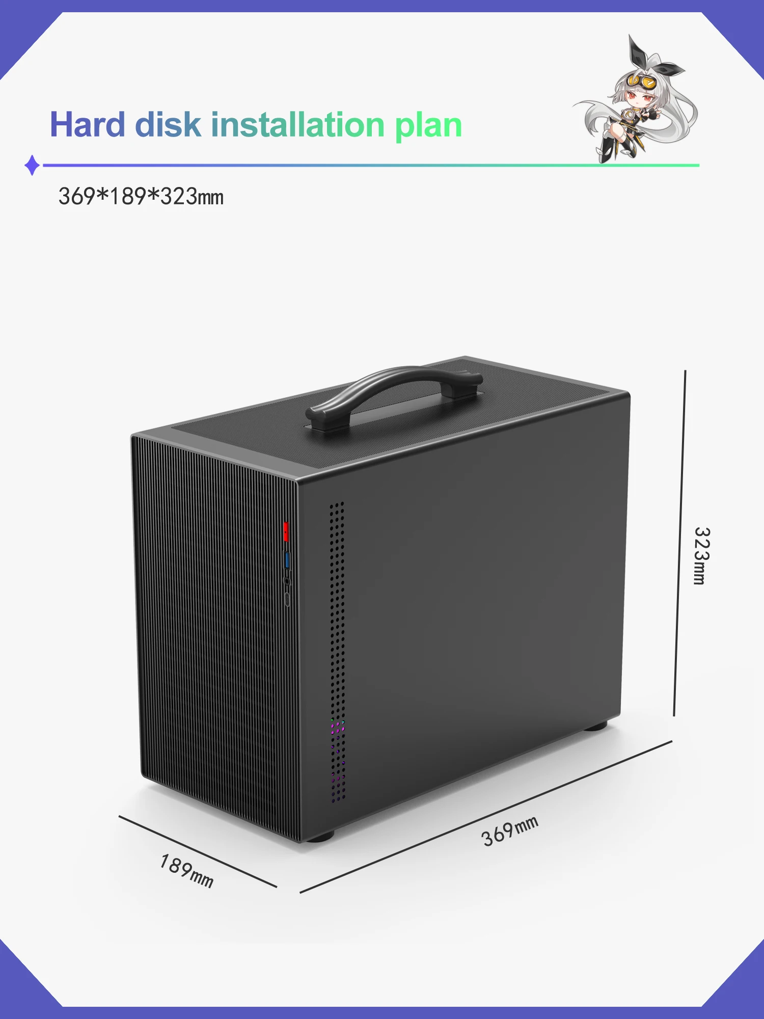 Ranura para disco duro: 3,5 "HDD * 1, 2,5" SSD * 2 o 3,5 "HDD * 2, 2,5" SSD * 2 (sin ventilador instalado en la parte inferior)