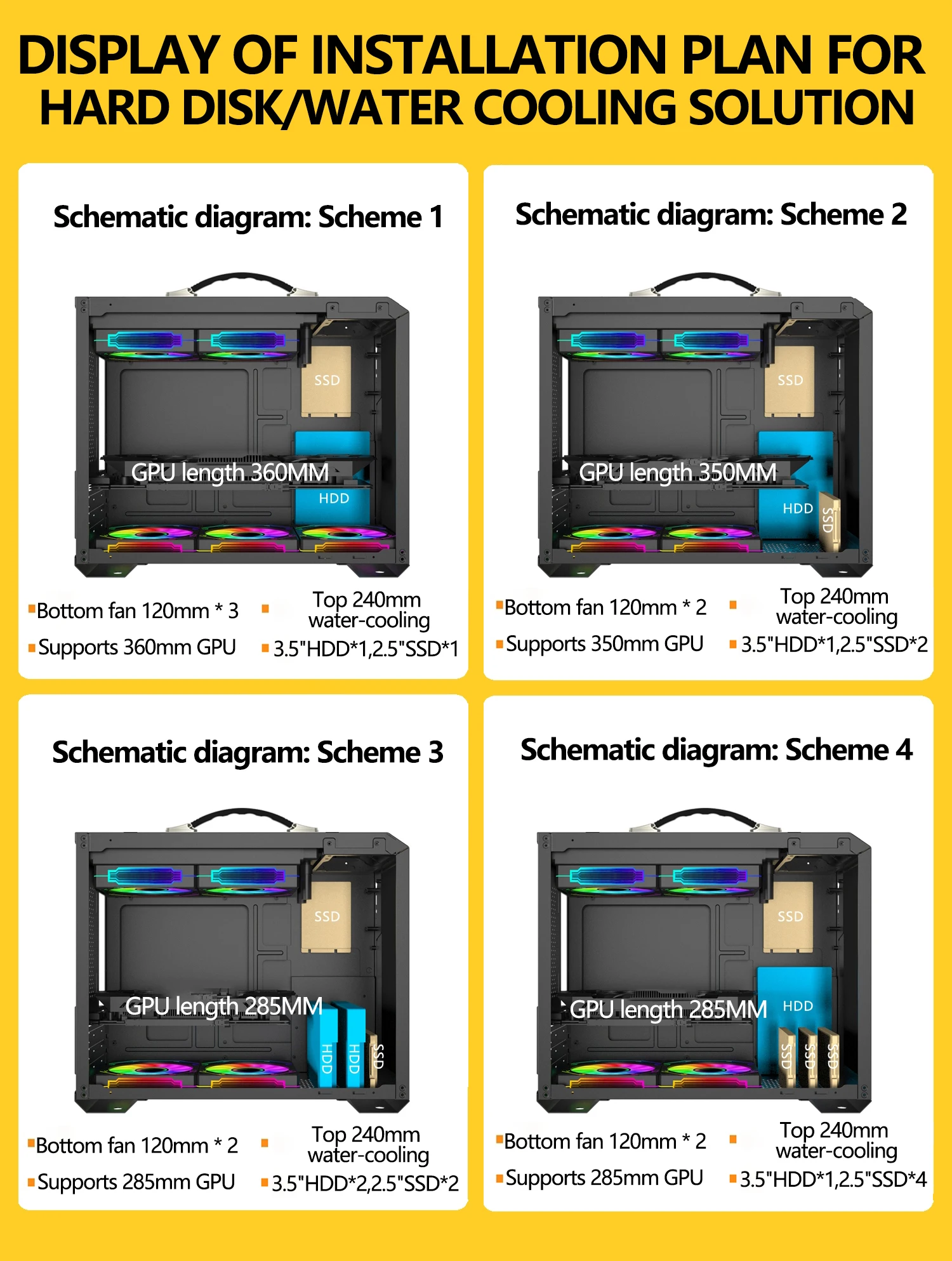 Parte superior: ventilador de 120 mm * 2/240 mm refrigerado por agua