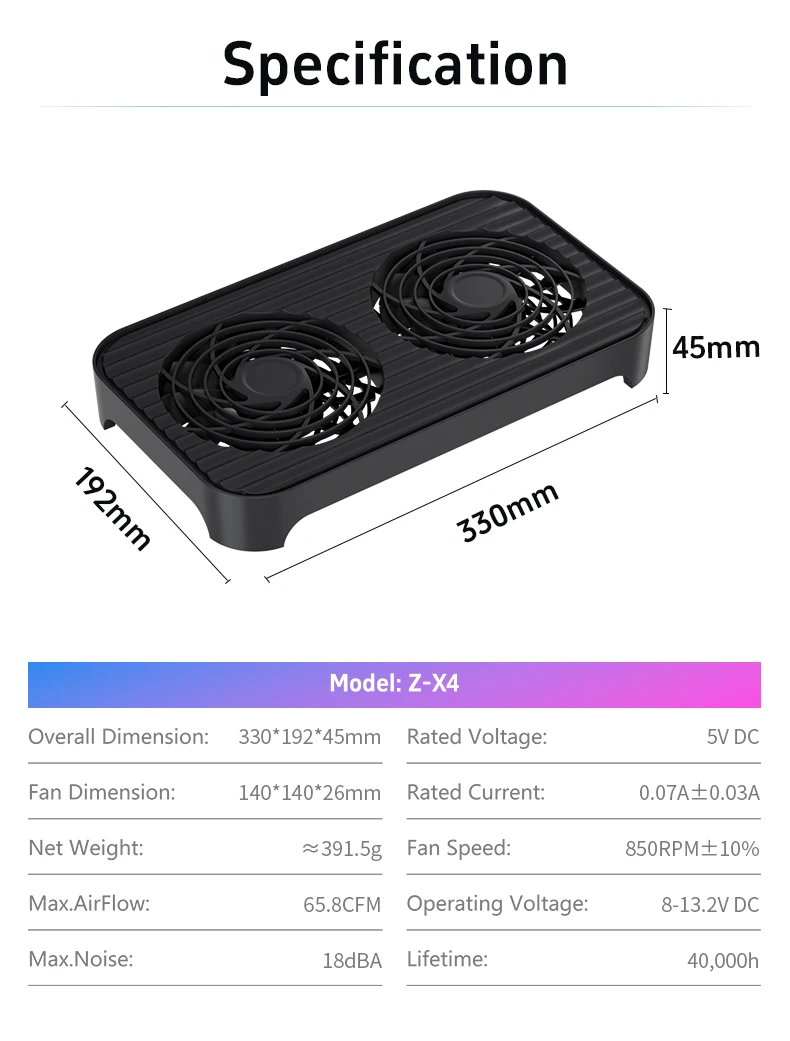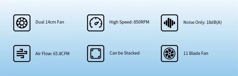 POWER TRAIN Z-X4 ventiladores duales de 14 cm apilables de bajo ruido usando enrutador/chasis en miniatura Base de radiador interfaz USB 65,8 CFM/18dBA
