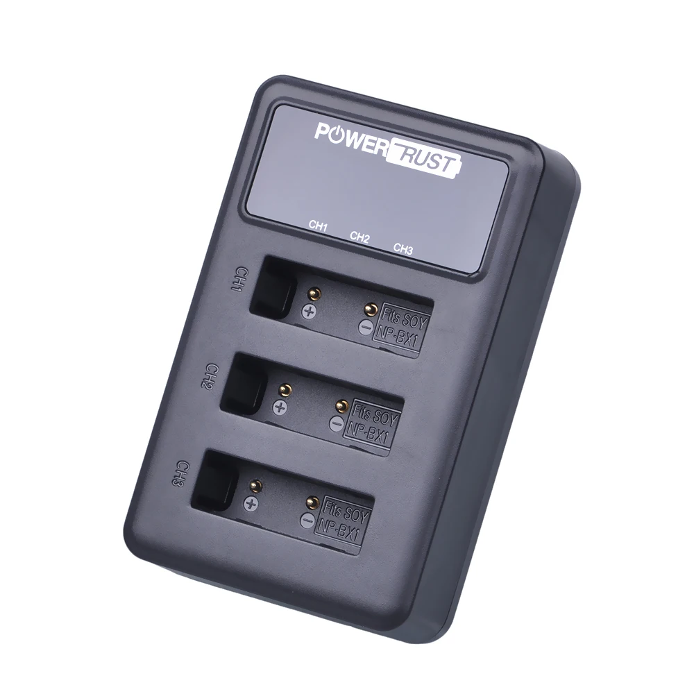 Powertrust NP BX1 Bateria NP-BX1 Batería + LED Cargador USB de 3 puertos para Sony DSC RX1 RX100 AS100V M3 M2 HX300 HX400 HX50 HX60 GWP88 AS15 WX350 ZV-1 Cámara de registro