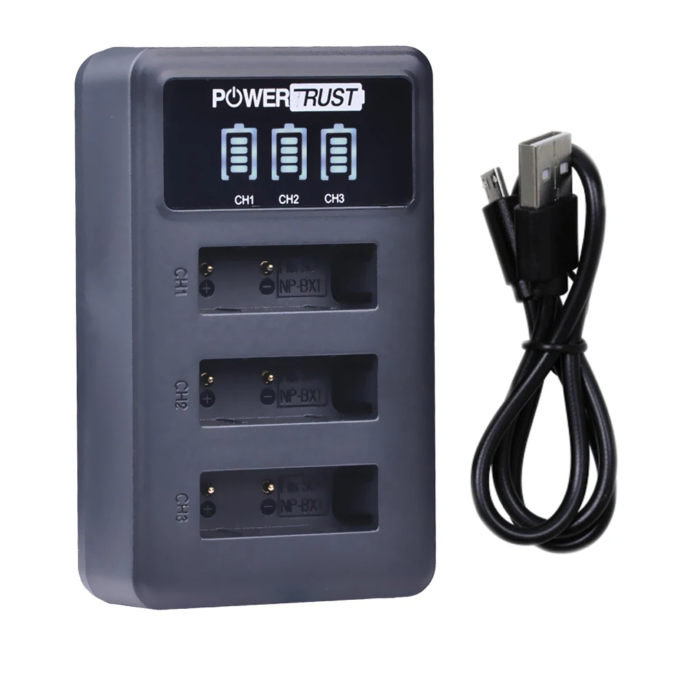 Powertrust NP BX1 Bateria NP-BX1 Batería + LED Cargador USB de 3 puertos para Sony DSC RX1 RX100 AS100V M3 M2 HX300 HX400 HX50 HX60 GWP88 AS15 WX350 ZV-1 Cámara de registro
