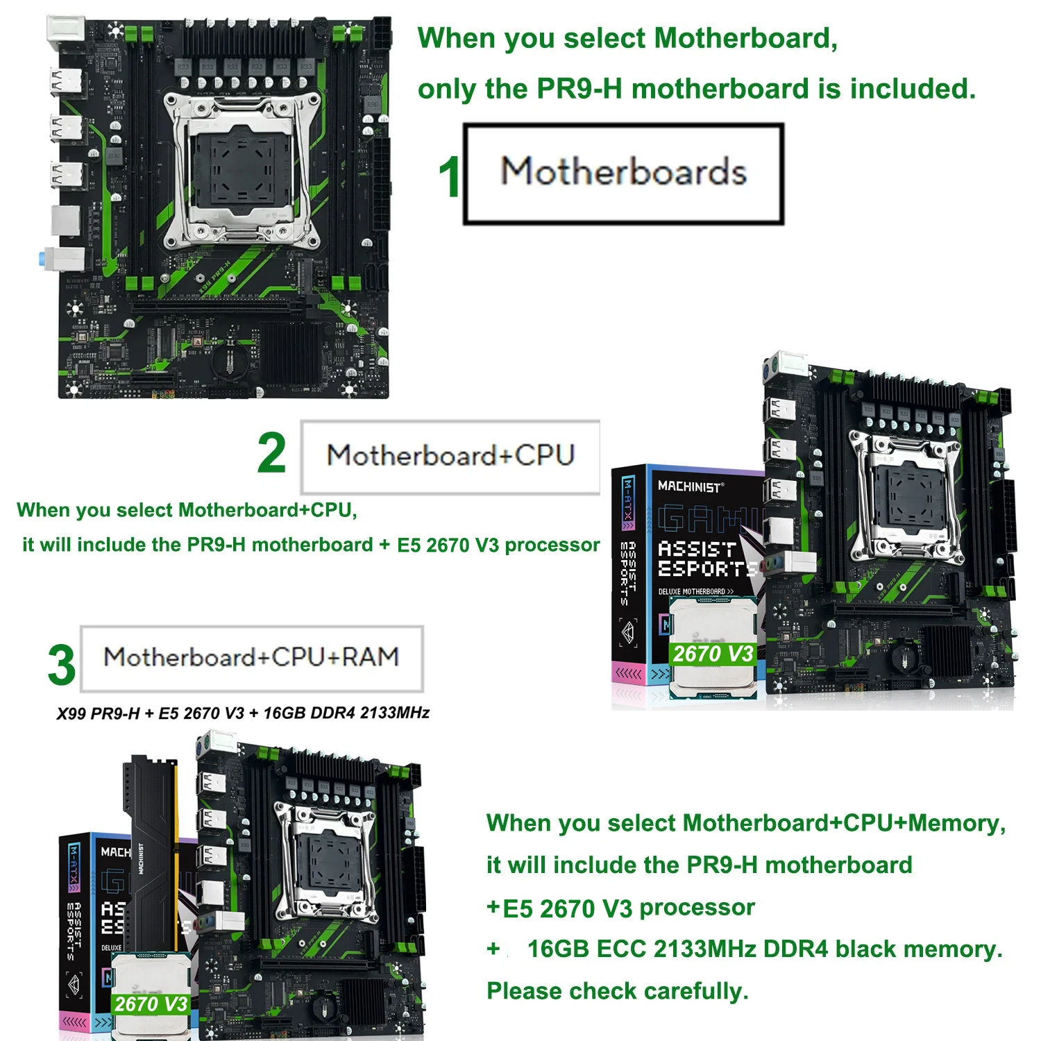 Presta atención a las opciones del paquete antes de comprar.Compra una sola placa base.No enviamos CPU ni memoria.Por favor revise cuidadosamente.
