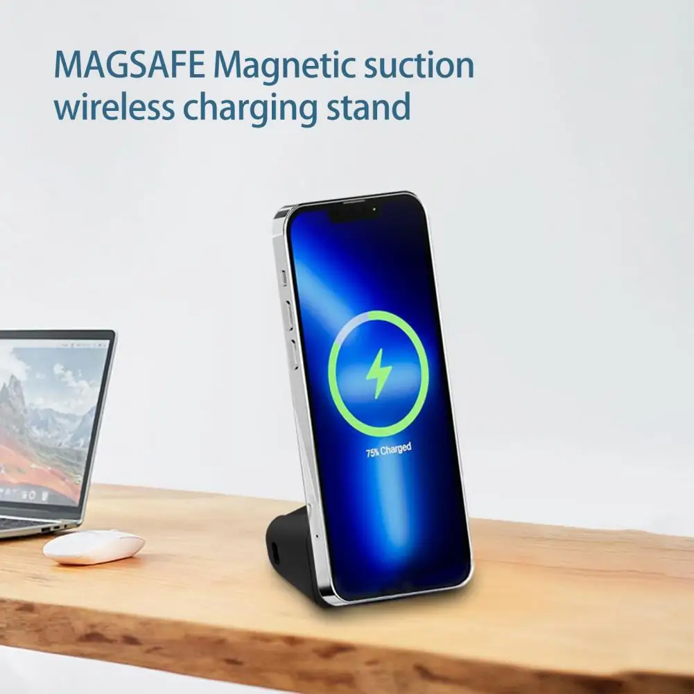 Este soporte de fotos se puede utilizar no solo como soporte de teléfono para ver películas y como temporizador inalámbrico antivibración compatible con Bluetooth para selfies,. Pero también como cargador magnético inalámbrico para cargar tu teléfono gracias a su diseño 3 en 1.