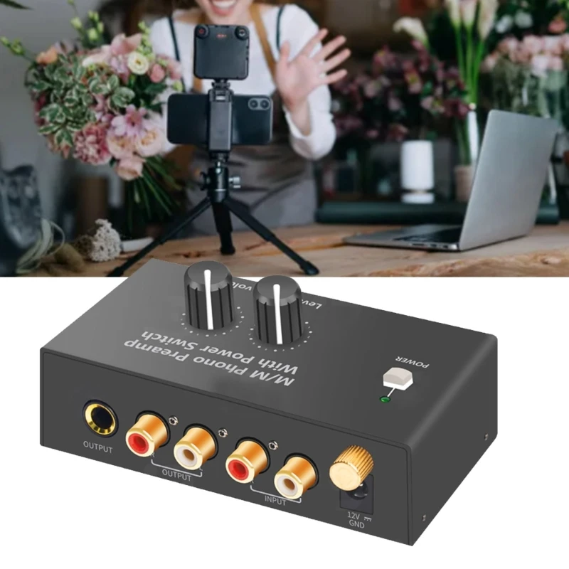 Soporta Entrada de tocadiscos RCA, salida de auriculares de 6,5 MM y salida de línea RCA para altavoz alimentado. Preamplificador compacto de tocadiscos de bajo ruido que convierte las señales de fono en señales de nivel de línea.