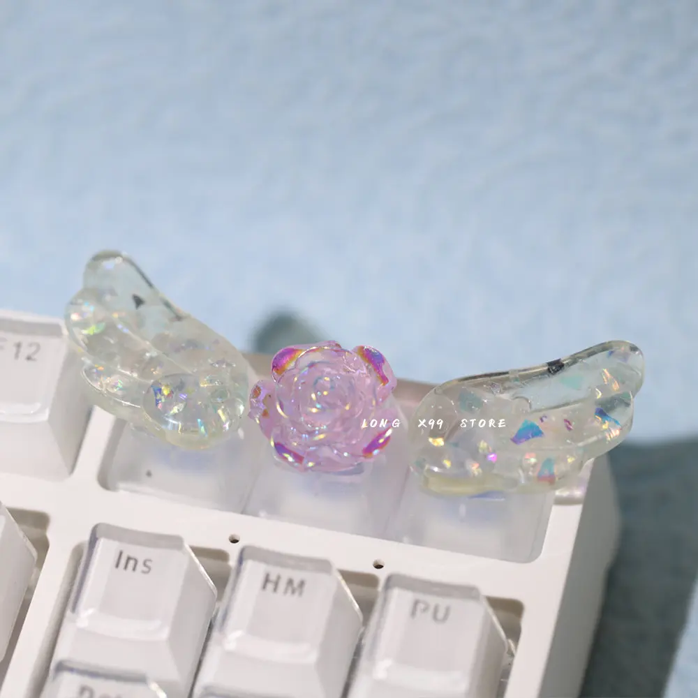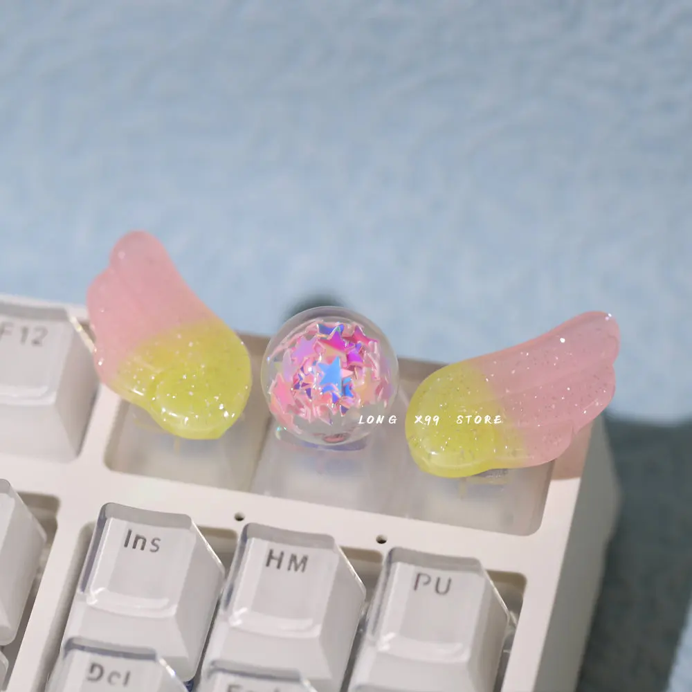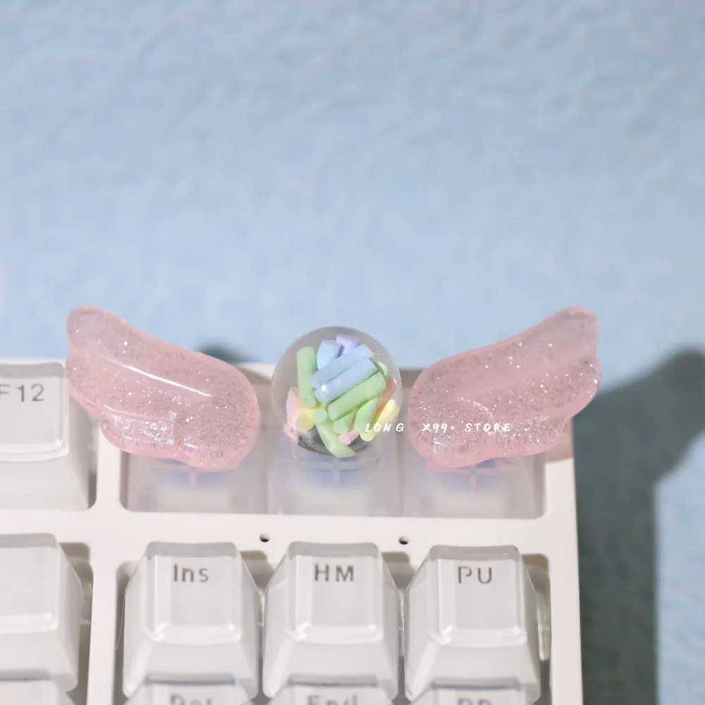 Comprar Precio especial limitado, teclas translúcidas transparentes personalizadas, teclas de cristal con alas bonitas, tapa de teclado mecánico hecha a mano