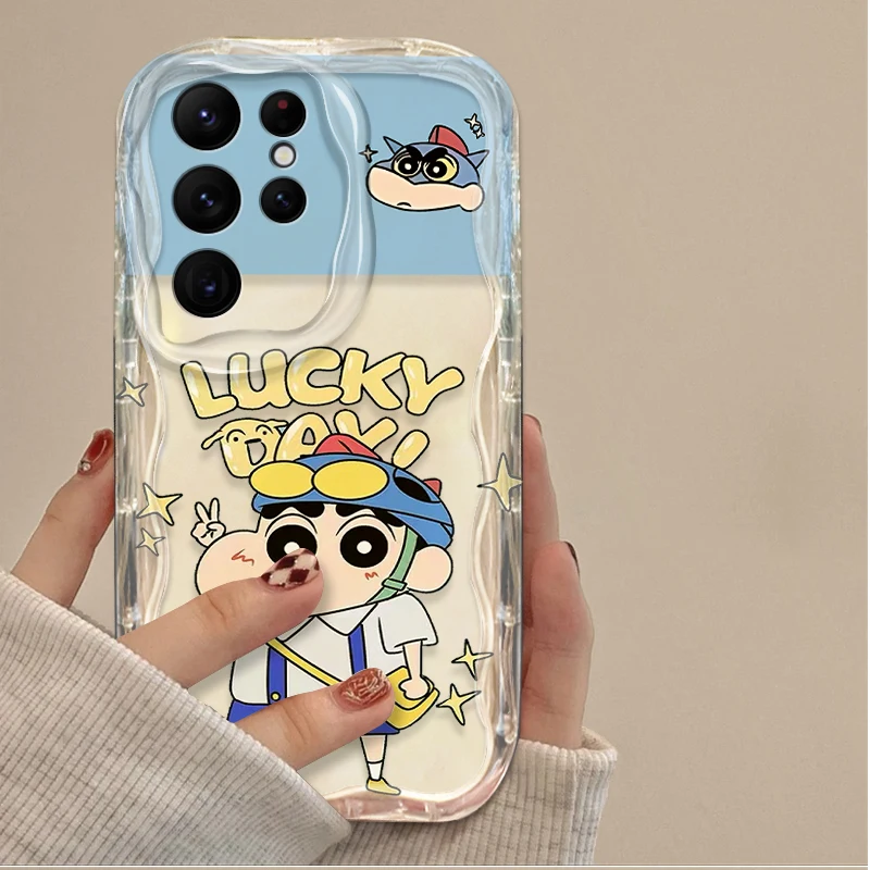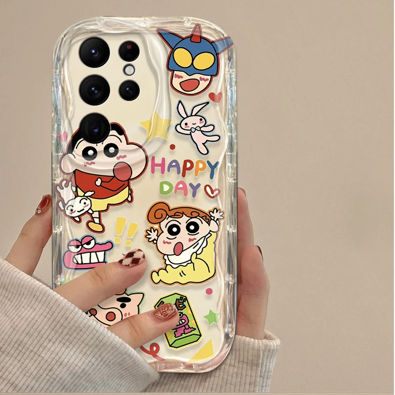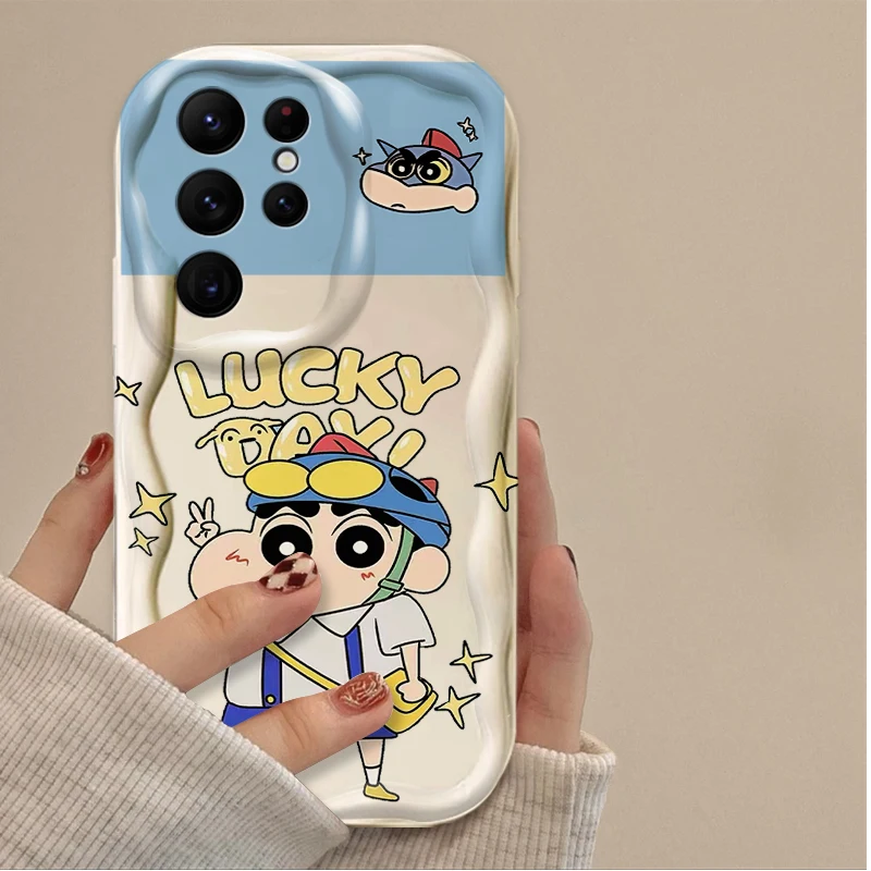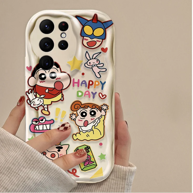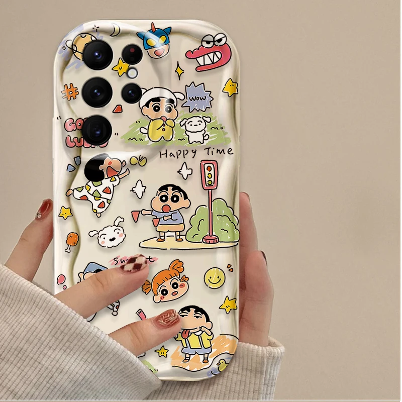 Preciosa funda C-Crayon S-ShinChan 3D Wave para Samsung Galaxy S24 Ultra S23 S22 Plus S21 S20 FE A25 A55 A35 A15 A16 A05 A05S A06