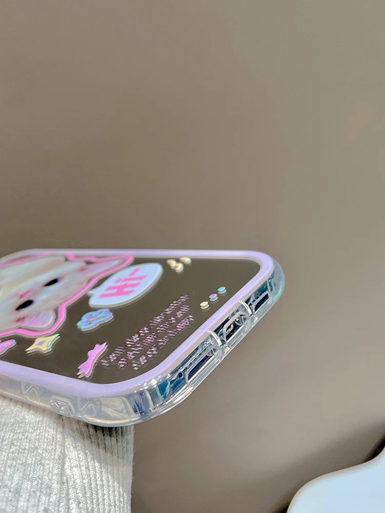 Comprar Preciosa funda con espejo de maquillaje de gato blanco para iPhone 14 Pro Max 16 15 13 11 12 parachoques de silicona bonita contraportada Capa
