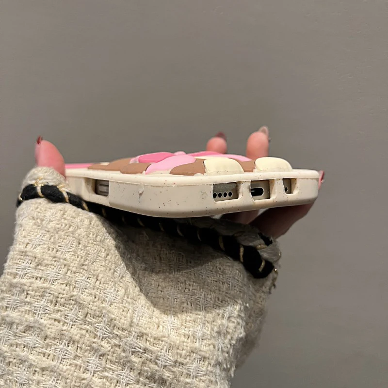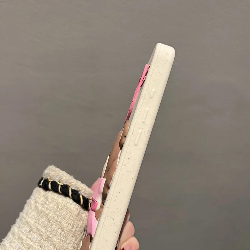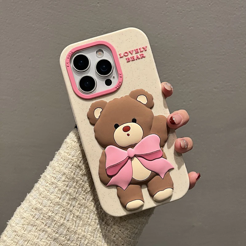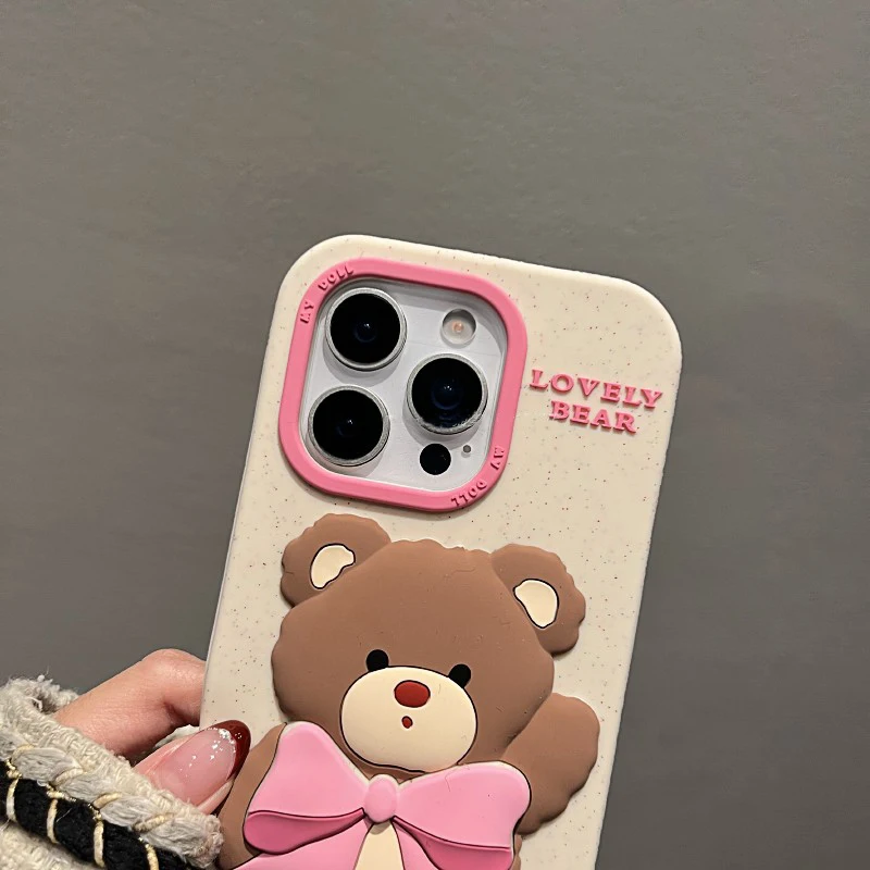 Funda de silicona suave con lazo rosa y oso para iPhone 13 14 15 16 Pro Max, funda protectora bonita a prueba de golpes con dibujos animados para teléfono