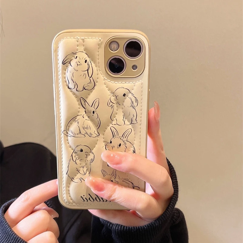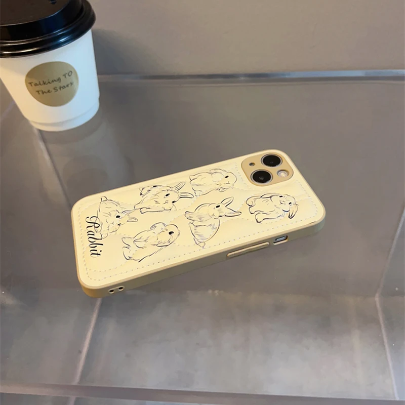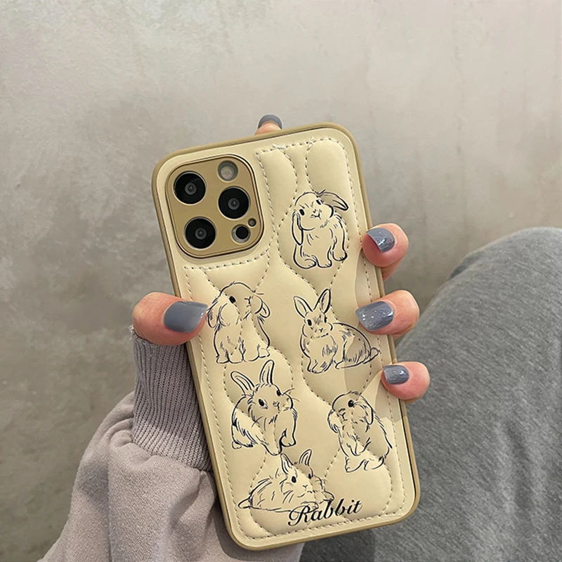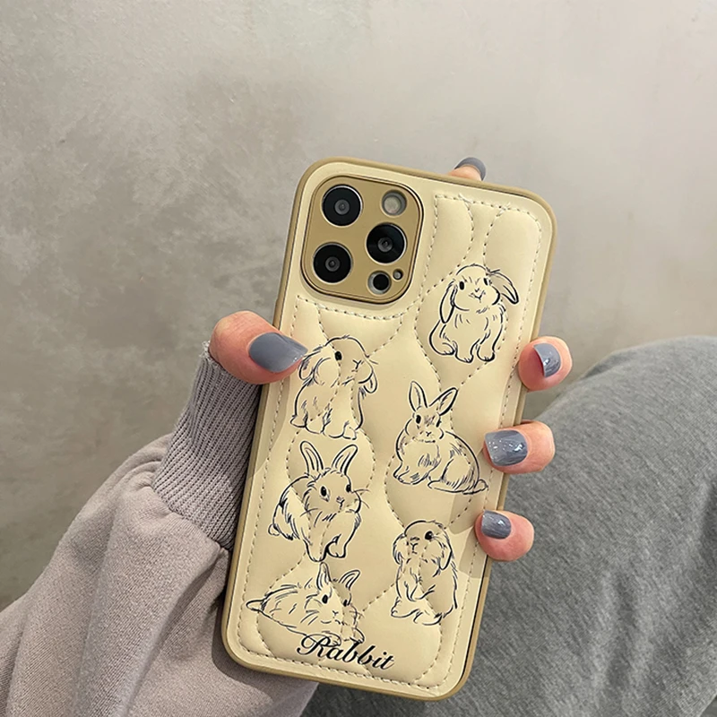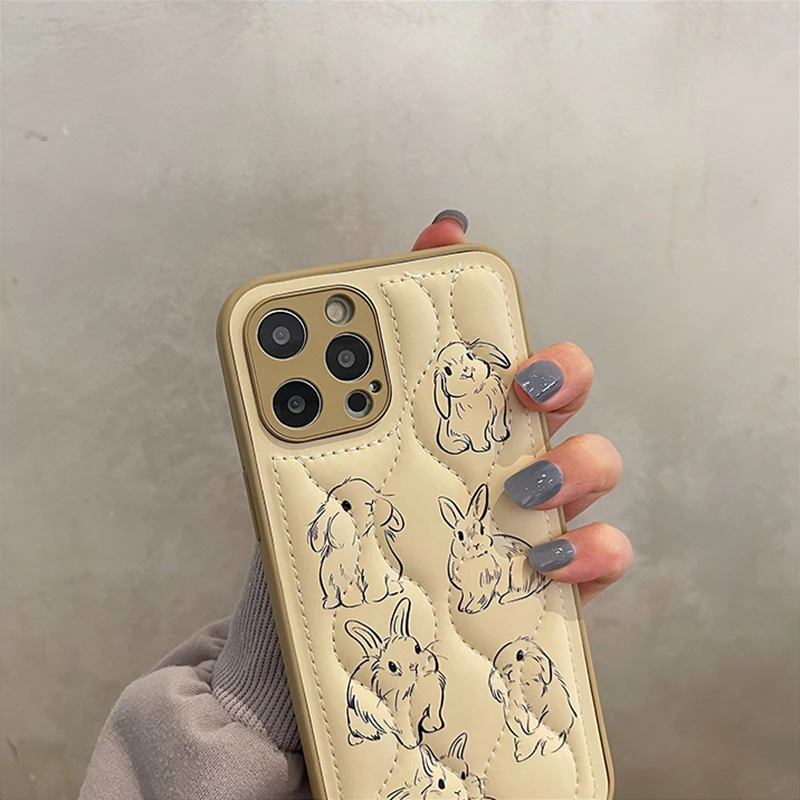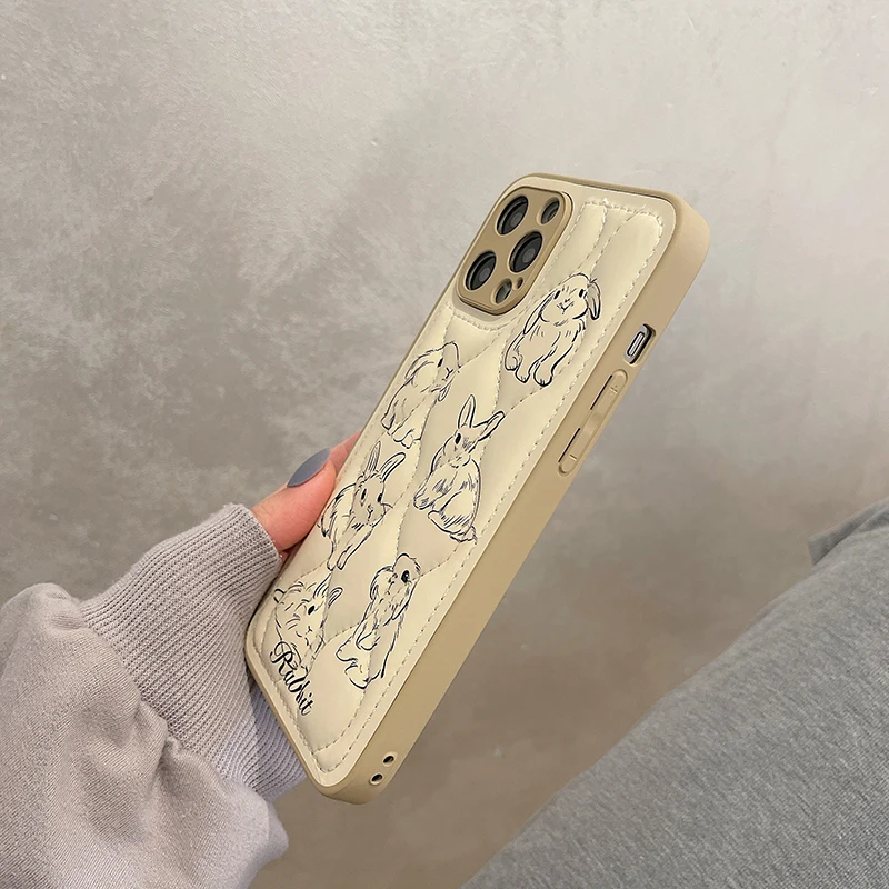 Preciosa funda de teléfono a prueba de golpes con curva de conejo para iPhone 13 11 12 14 Pro Max XS XR X funda de silicona de cuero PU suave