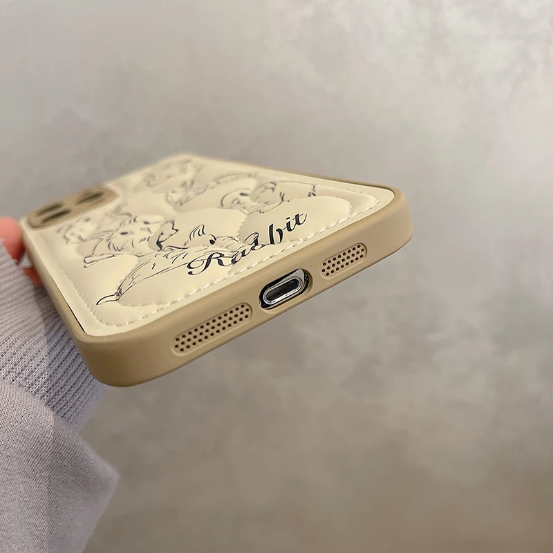 Comprar Preciosa funda de teléfono con curva de conejo a prueba de golpes para iPhone 13, 11, 12, 14, 15 16 Pro Max XS XR X, funda de silicona de cuero PU suave