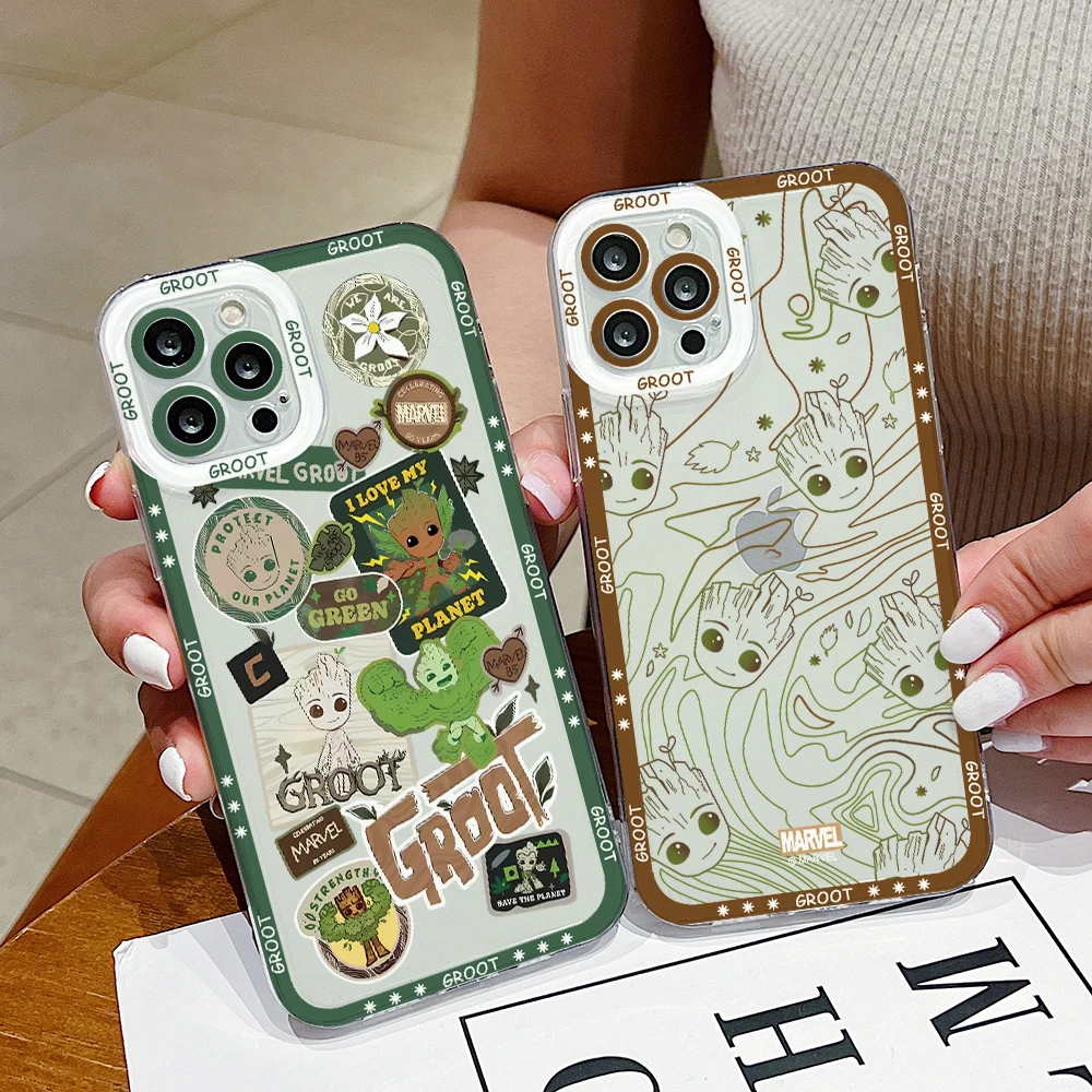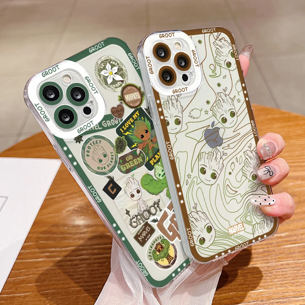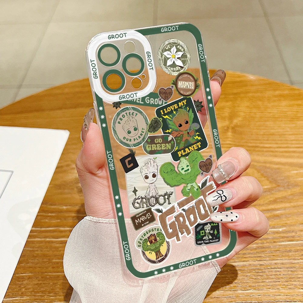 Preciosa funda de teléfono con etiqueta Groot para Oppo A78 A74 A60 A54 A38 A17 A16 Reno 12 11 10 8 7 A3 T Z F Pro 4G 5G, funda suave transparente de TPU