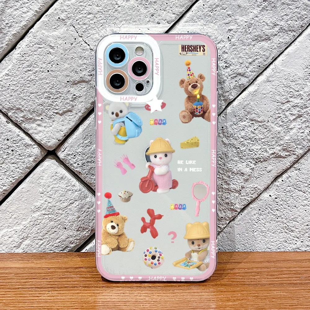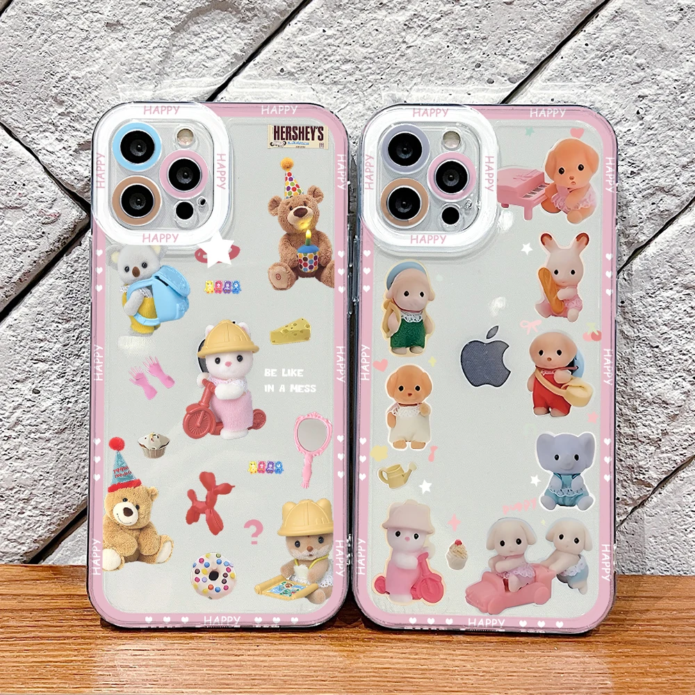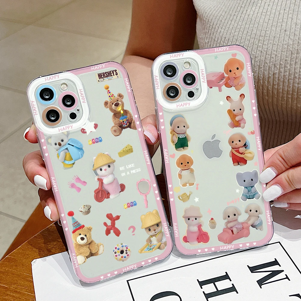 Preciosa funda de teléfono familiar de Sylvanians para Samsung Galaxy S25 S24 S23 S22 S21 Ultra Plus 5G S20 FE Note 20 10, funda transparente suave