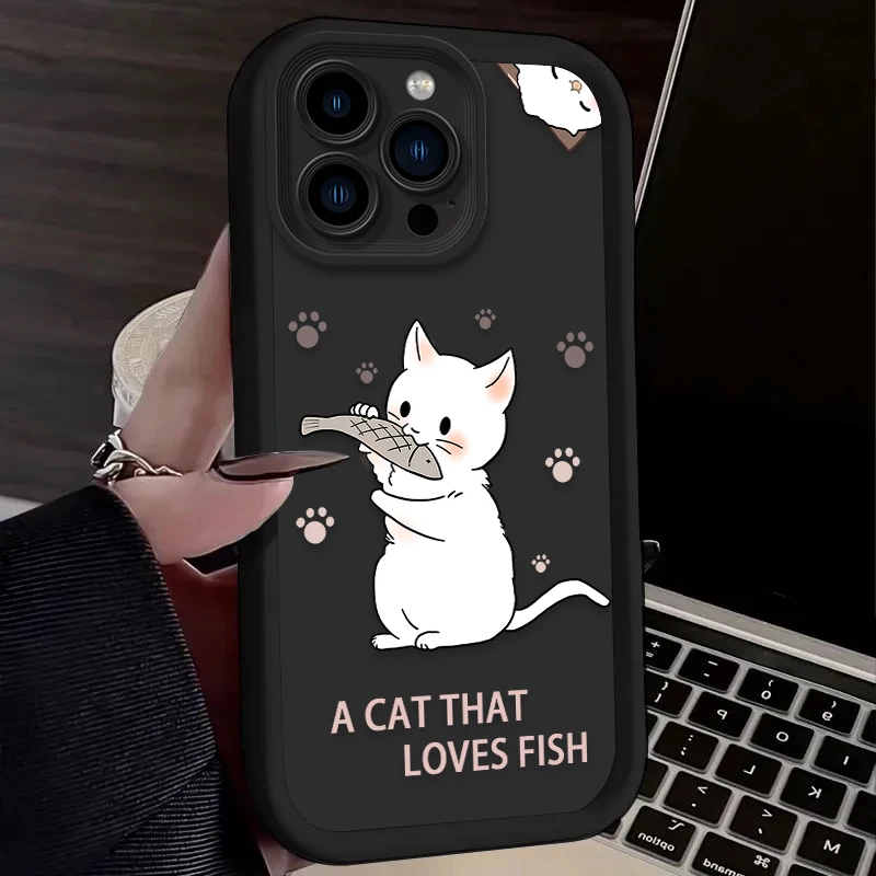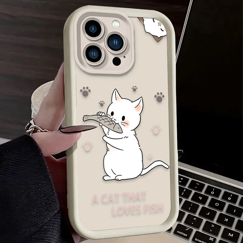 Preciosa funda de teléfono suave de gato bebé blanco para iPhone 16 16E 15 14 13 12 11 Pro Max X XS X S Max XR SE 2020 SE4 7 8 cubierta a prueba de golpes
