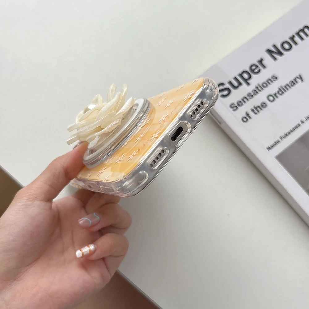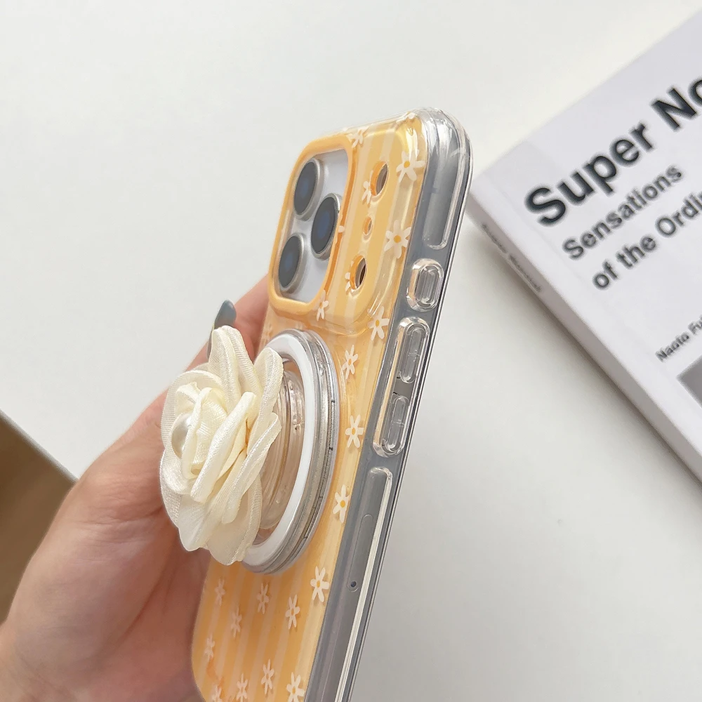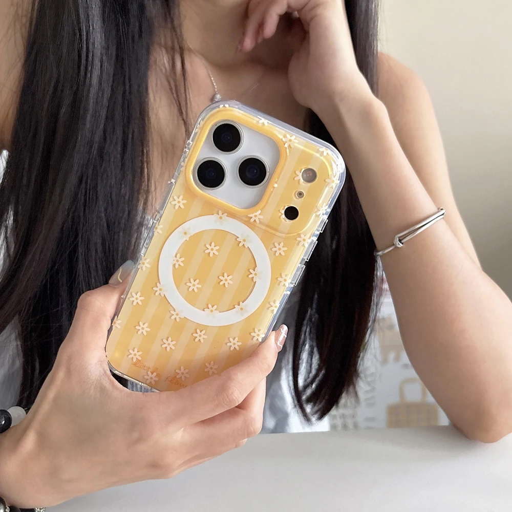 Funda de teléfono Tok con agarre magnético con patrón de rayas de flores encantadora para iPhone 17 16 15 14 Pro Max Carga inalámbrica Compatible con funda con soporte Magsafe