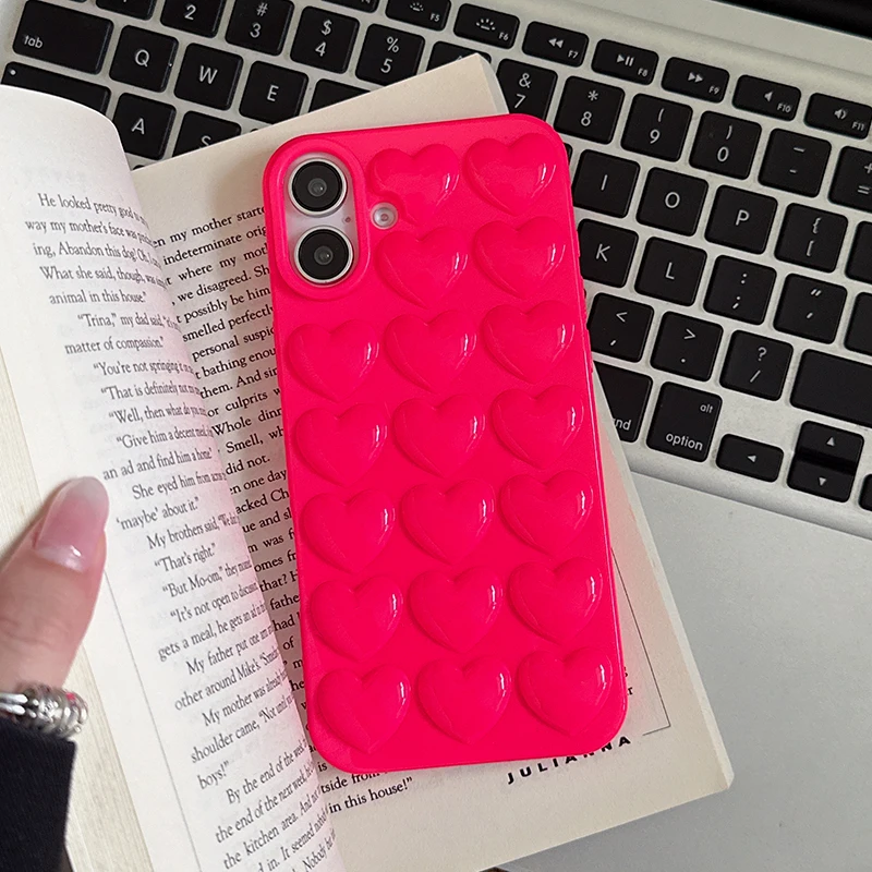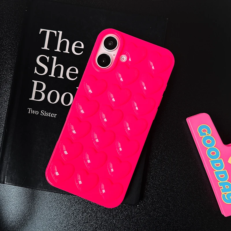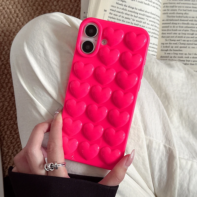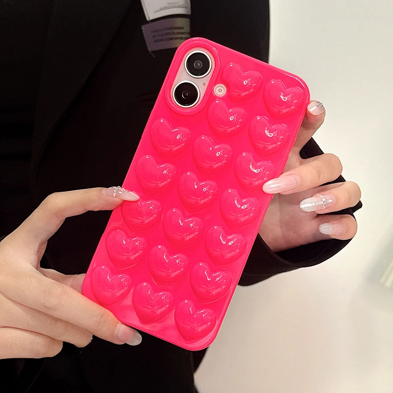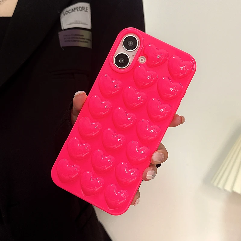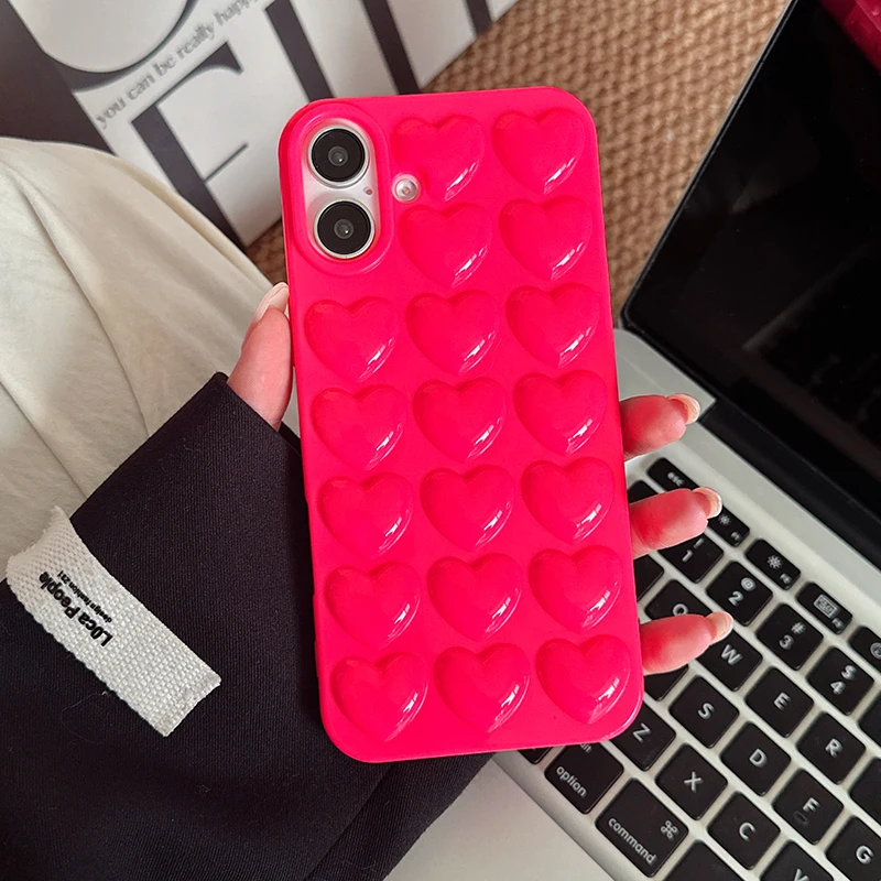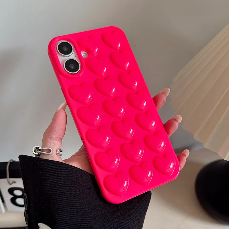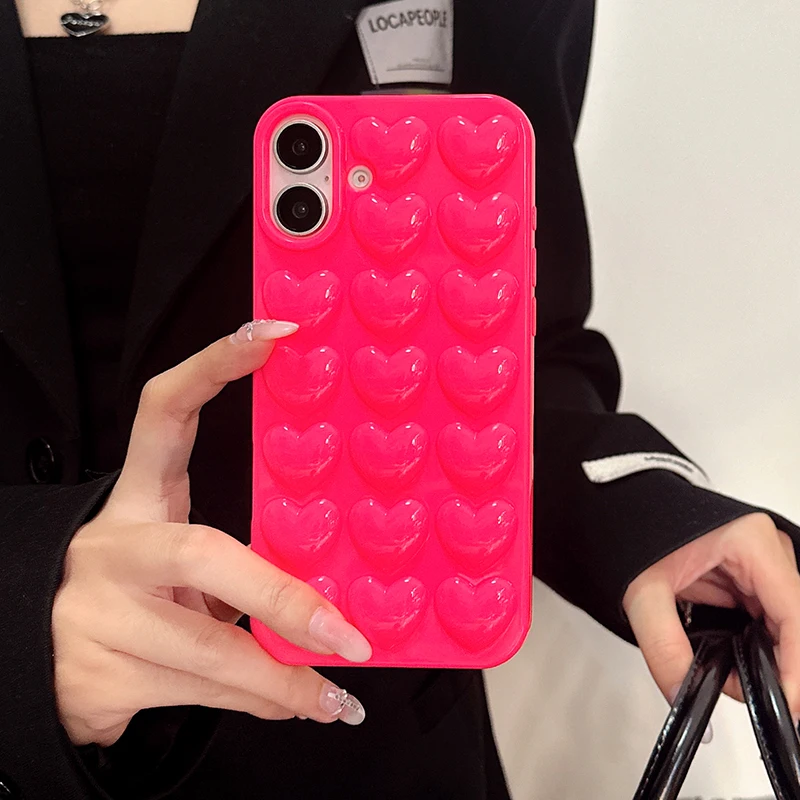Comprar Preciosa funda trasera de silicona TPU brillante con corazón de amor rosa para iPhone 11 12 13 14 15 16 Pro Max
