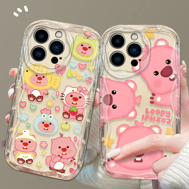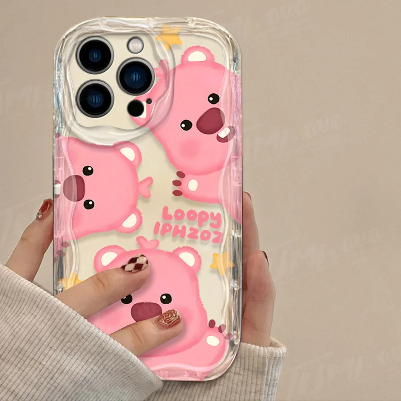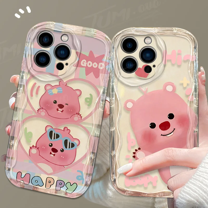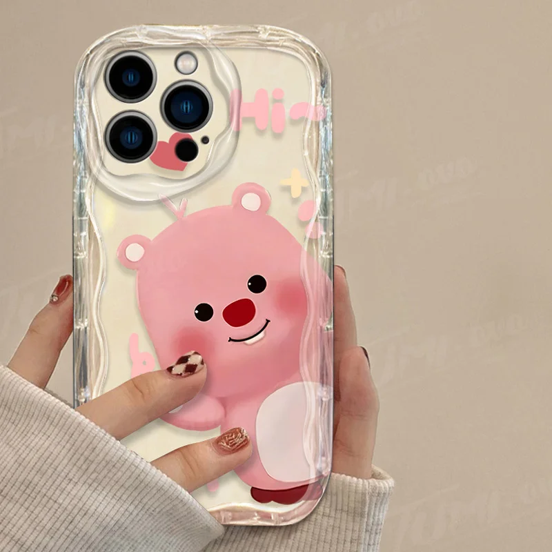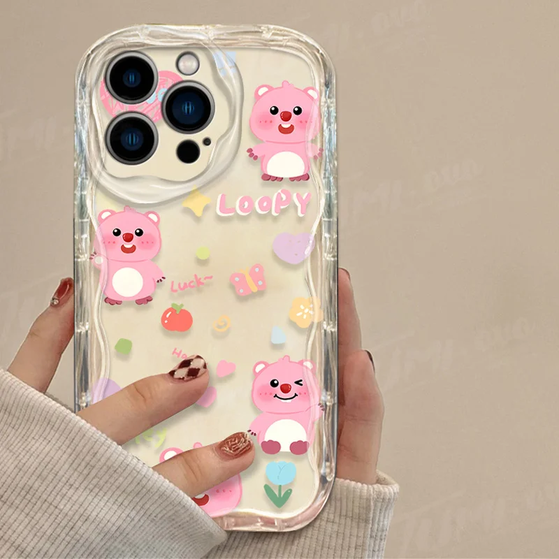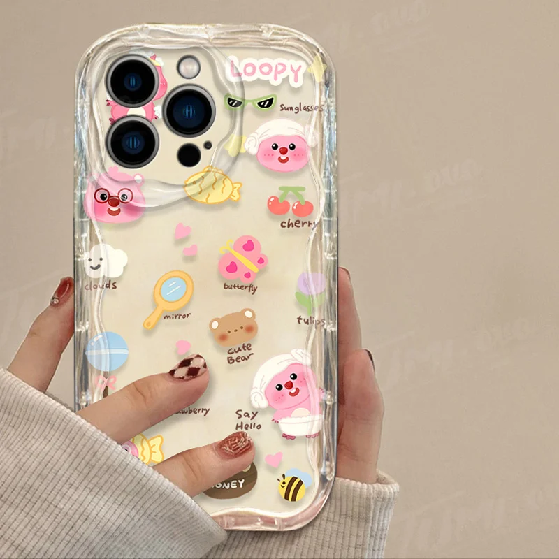 Precioso estuche de dibujos animados L-Loopy Clear 3D Wave para iPhone 15 14 13 12 11 Pro Max X XR XS 8 7 6 6S Plus SE 2020 contraportada a prueba de golpes