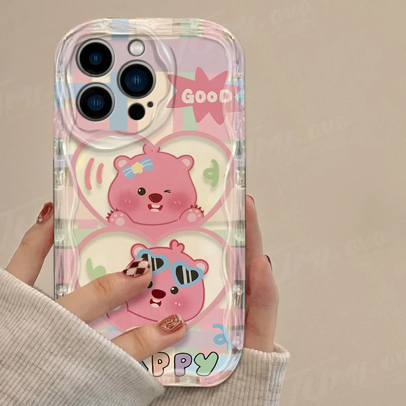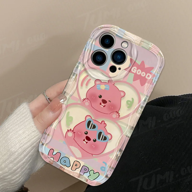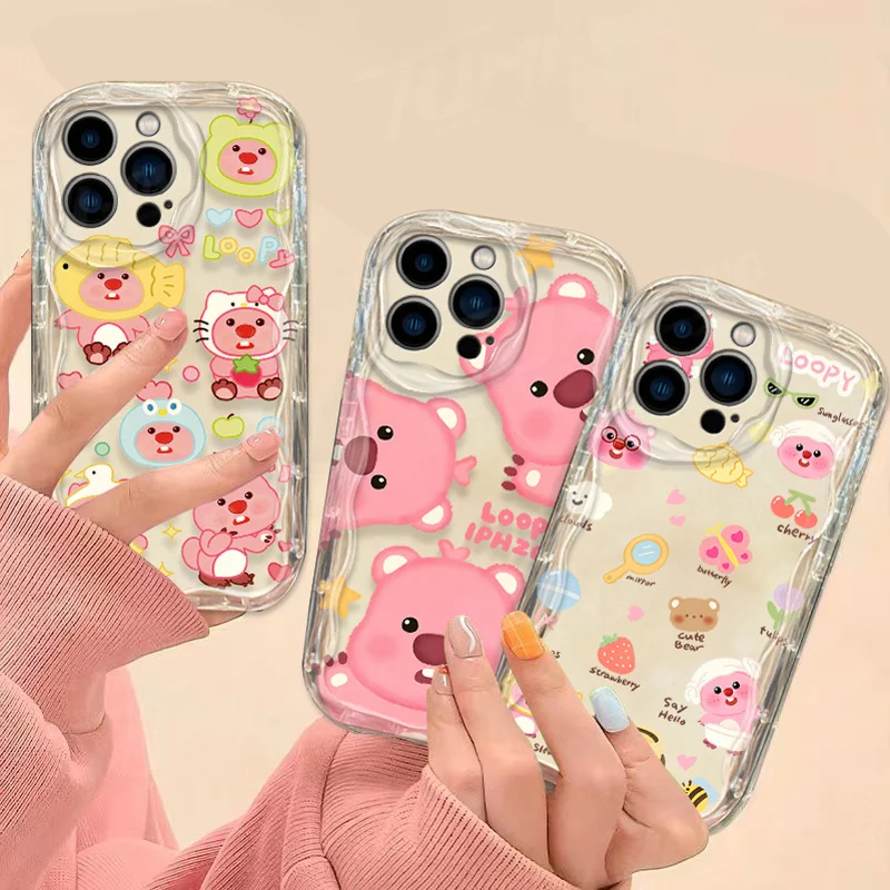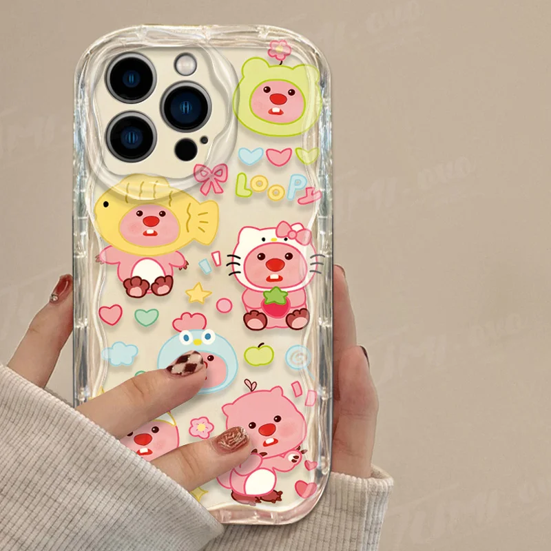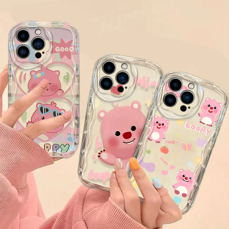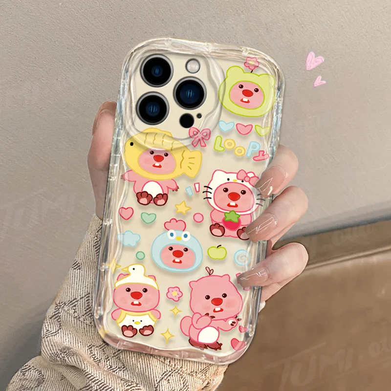Precioso estuche de dibujos animados L-Loopy Clear 3D Wave para iPhone 15 14 13 12 11 Pro Max X XR XS 8 7 6 6S Plus SE 2020 contraportada a prueba de golpes