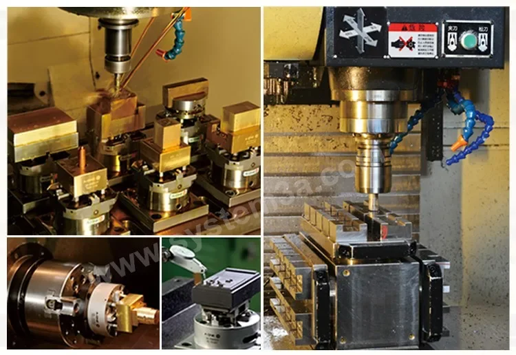 Ahora la empresa ha desarrollado de forma independiente el sistema JIG de posicionamiento rápido 3A, el sistema de punto cero, el sistema de eje de bloqueo de bola, CNC el mandril de pinza de la máquina, el manguito guía, varios JIG no estándar y ofrecen líneas de producción flexibles personalizadas para los clientes. Los accesorios desarrollados por nuestra empresa son fáciles de usar, con una precisión de posicionamiento del mandril de hasta 0.002mm, lo que ayuda a los clientes a lograr un procesamiento rápido y eficiente. Después de una prueba práctica a largo plazo del mercado, ha ganado elogios de los clientes.