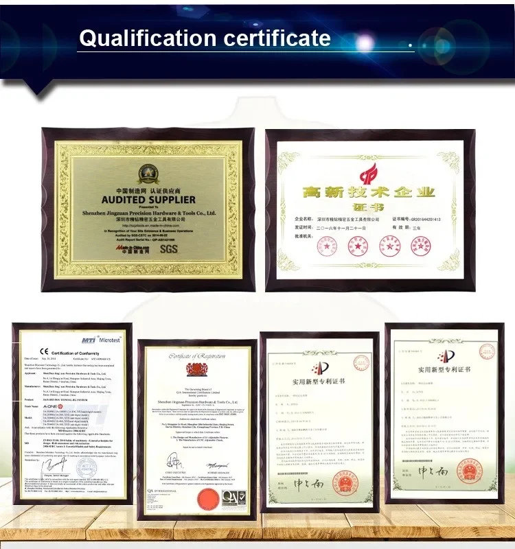 Shenzhen JingZuan Fabricación Inteligente CO.,LTDSe estableció en 2000, ubicada en la Zona Económica Especial de ShenZhen, que es la puerta sur de China. Tenemos un área de fábrica moderna de 6.000 ㎡. Después de 18 años de desarrollo, nos adherimos a la filosofía empresarial "El cliente es lo primero, la calidad lo primero". Y diseñamos un sistema de fijación de posicionamiento rápido para la producción de electrodos de molde, la fabricación de piezas de molde y la fabricación de accesorios de precisión. Creamos un entusiasta equipo de preventa y posventa que responde rápidamente y le brindamos un servicio excelente.