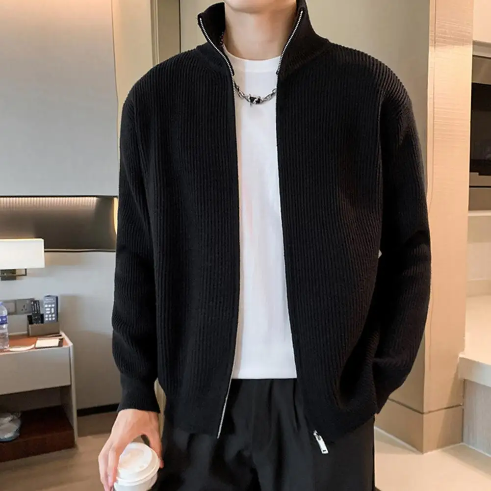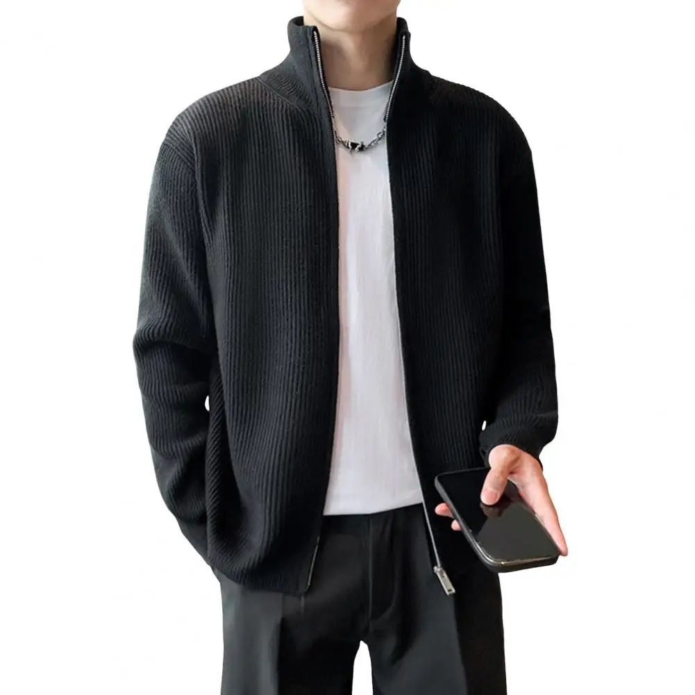 Prendas de punto para hombre, suéter de punto con cierre de cremallera elegante para hombre, abrigo con cuello alto, prendas de vestir exteriores informales para uso diario, escuela secundaria para A